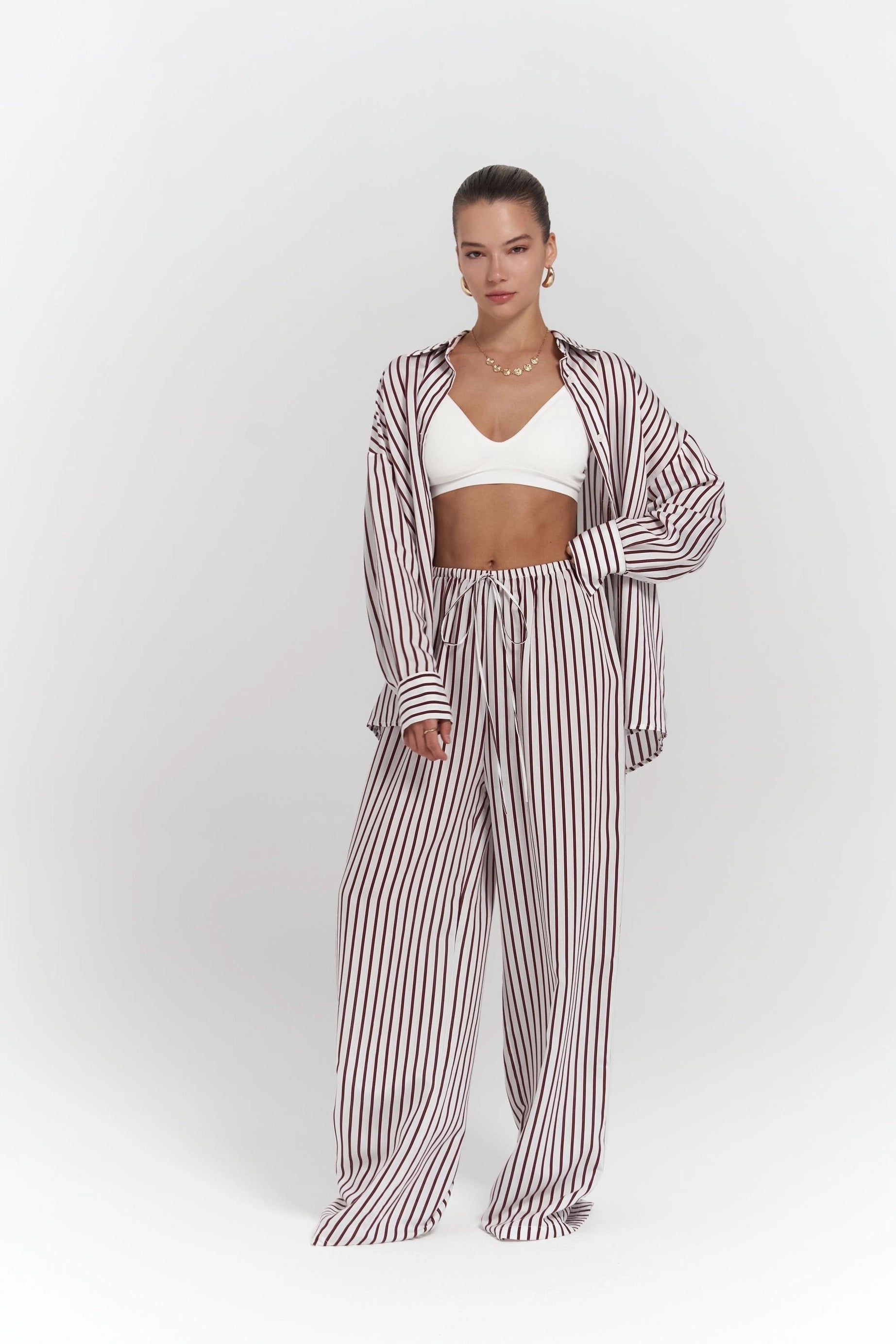 Transform your everyday style with the Beatrice set, the perfect combination of sophistication and comfort. Made from a lightweight and fluid material, this burgundy striped set on an ecru background brings a sophisticated touch to any outfit.