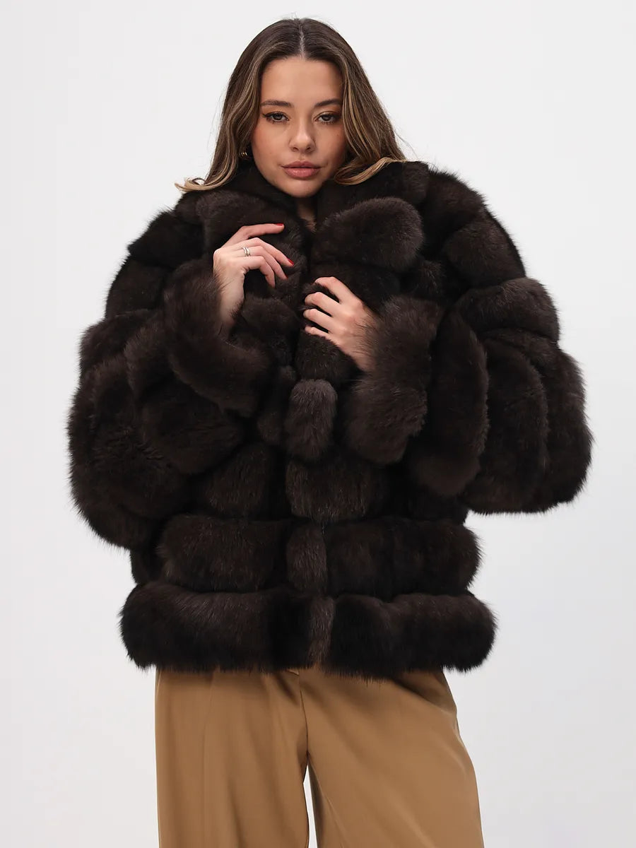 A coat made of natural arctic fox fur, with a rich, dense texture and a natural sheen that exudes discreet luxury. An exclusive piece, created for the woman who wants to combine refinement with absolute comfort.