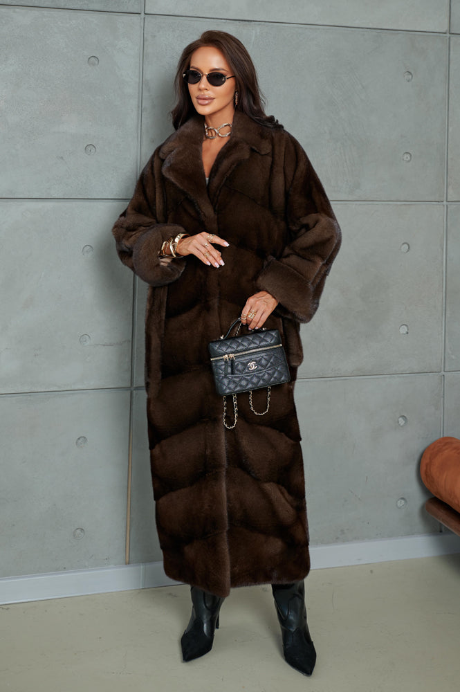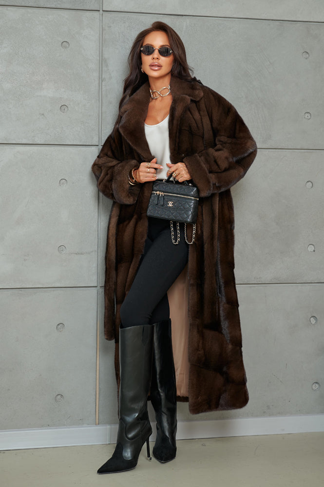 Crina este o jachetă lungă din blană naturală de vizon, creată pentru femeile care apreciază eleganța pură și rafinamentul atemporal. Textura fină, uniformă și luciul specific al nurcii conferă o apariție luxoasă, iar croiala dreaptă, modernă, pune în valoare silueta fără a compromite confortul.