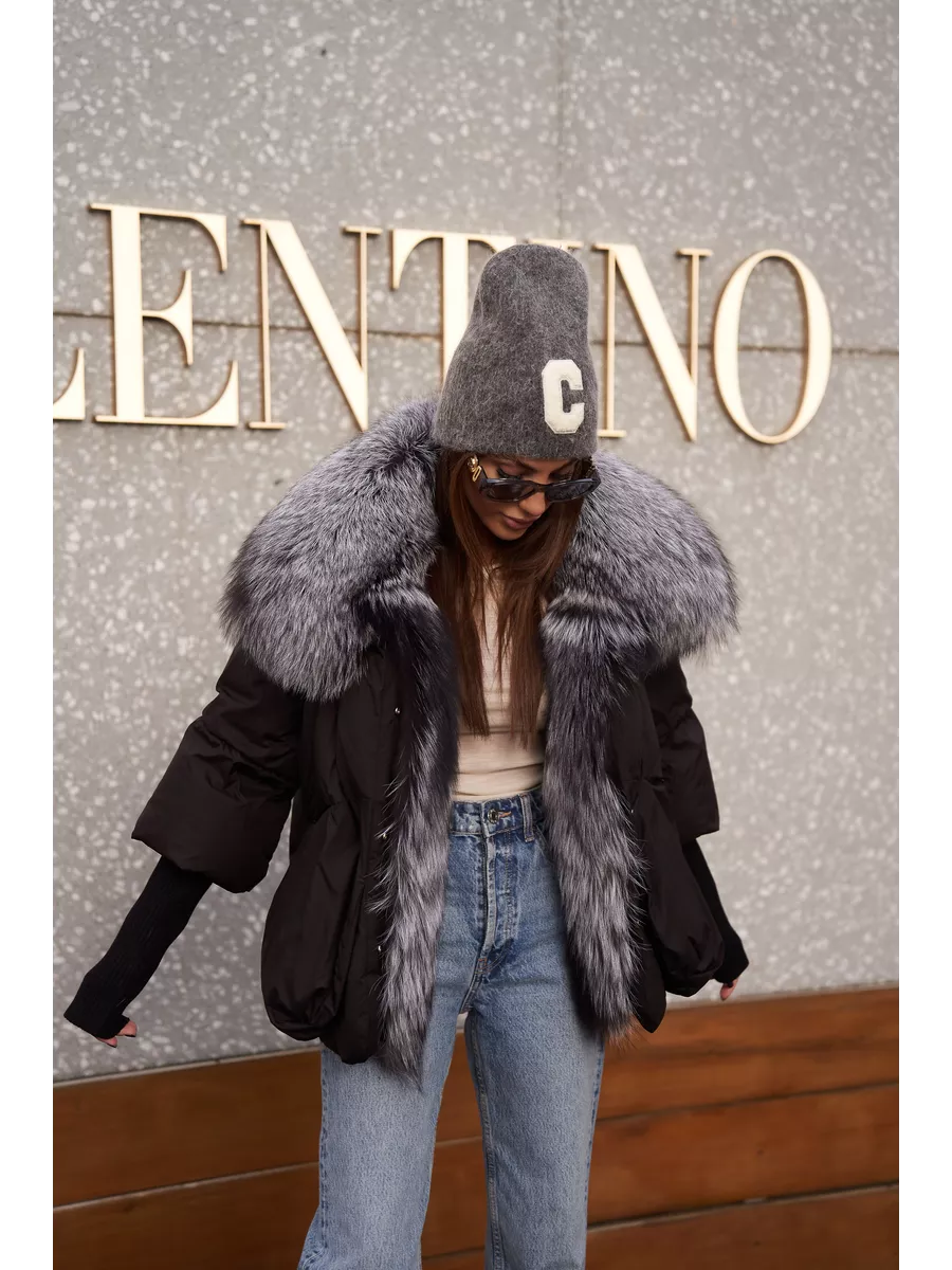The Fox Collar Goose Down Jacket is a staple for the smart casual wardrobe that combines classic biker style with modern sophistication. Crafted from premium materials, this jacket boasts durability and timeless appeal. The striking grey fur shade adds a contemporary twist to the traditional casual silhouette, making it a versatile piece for any occasion.
