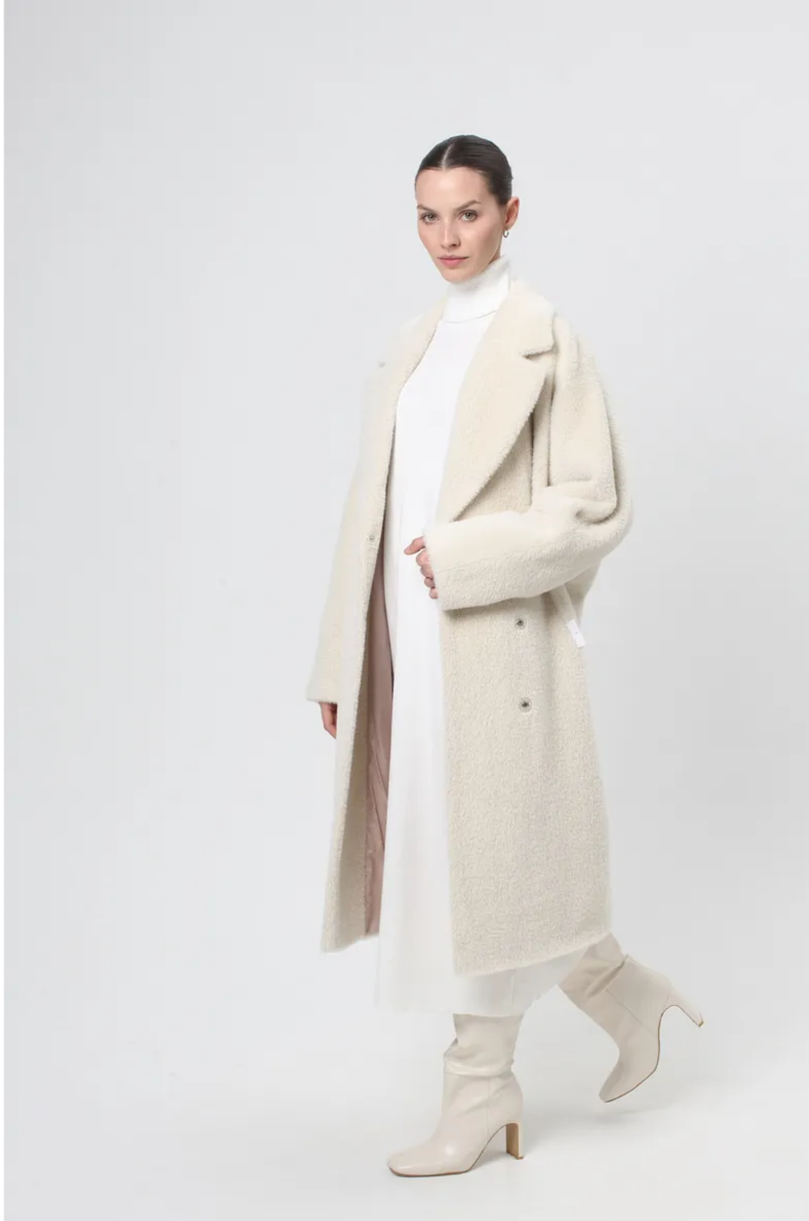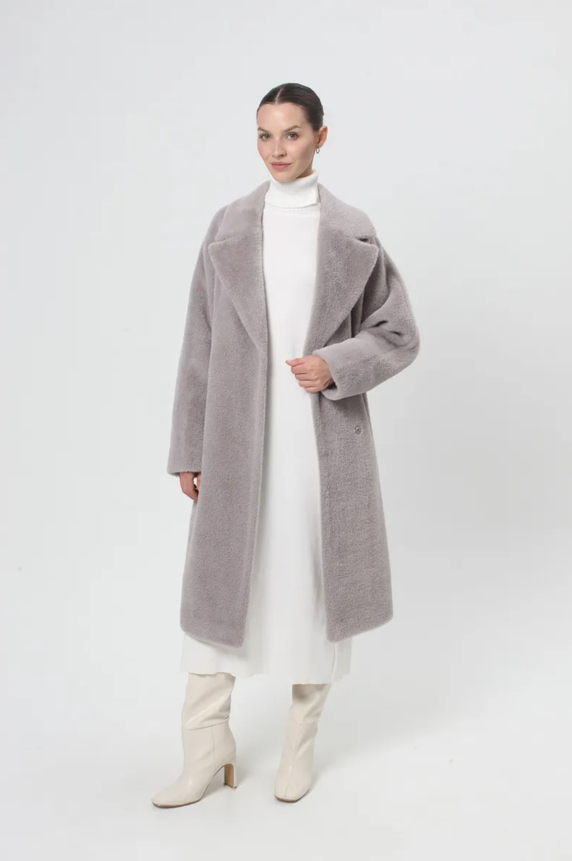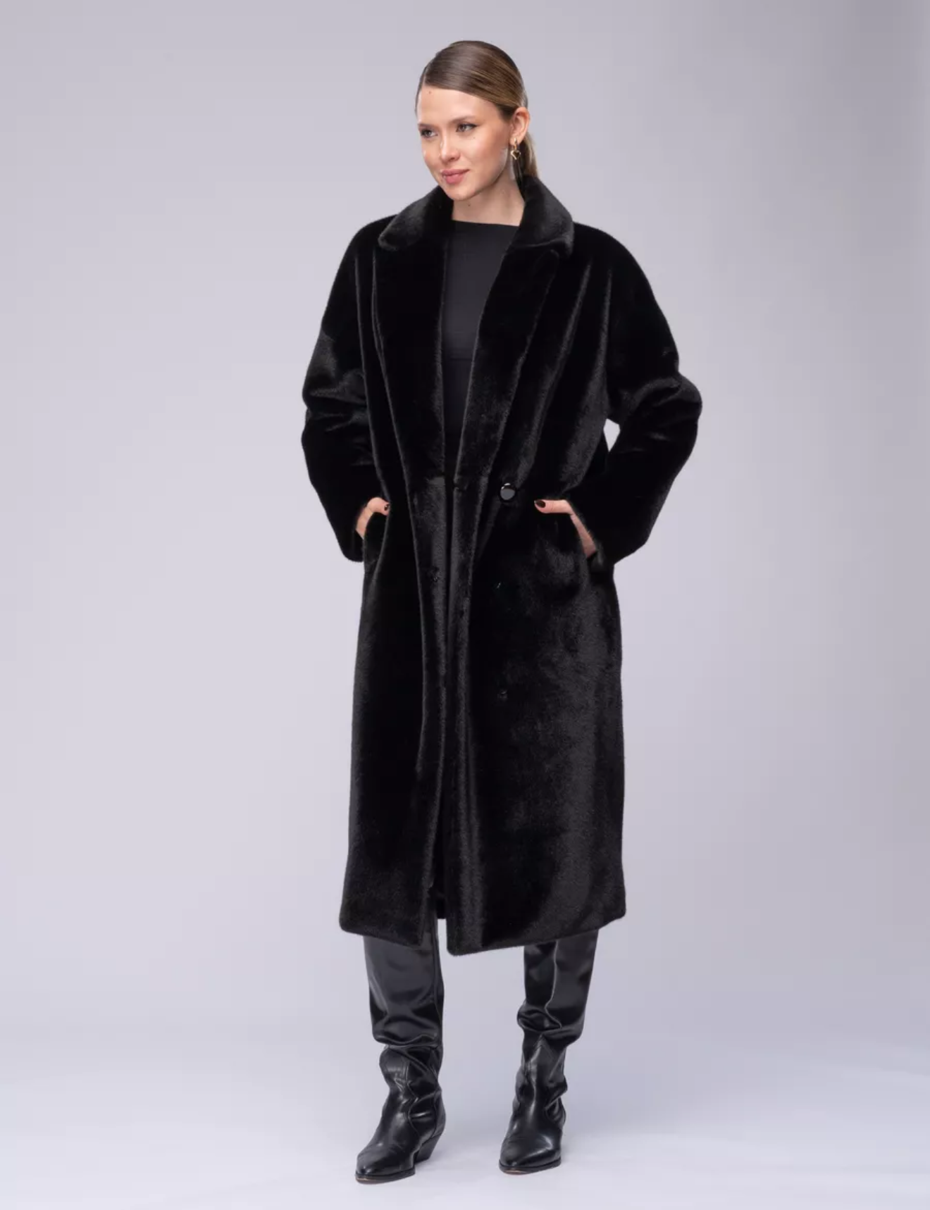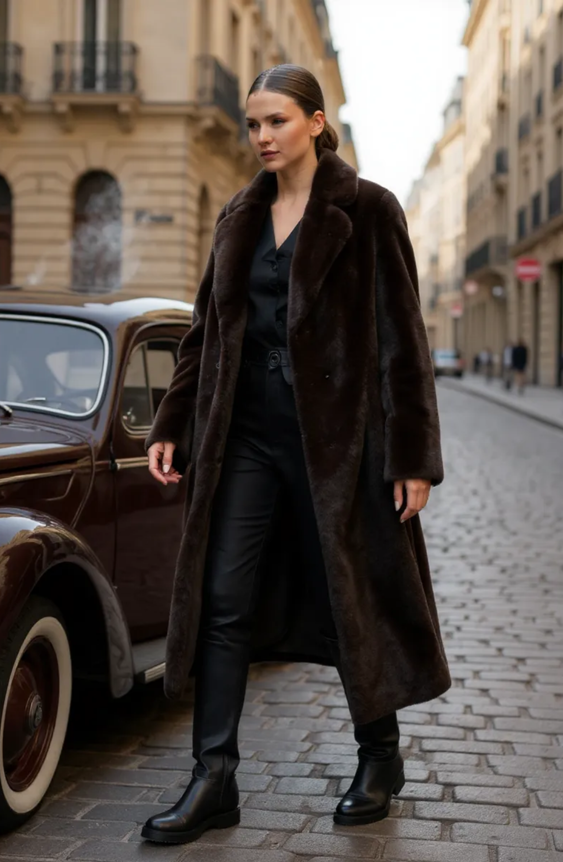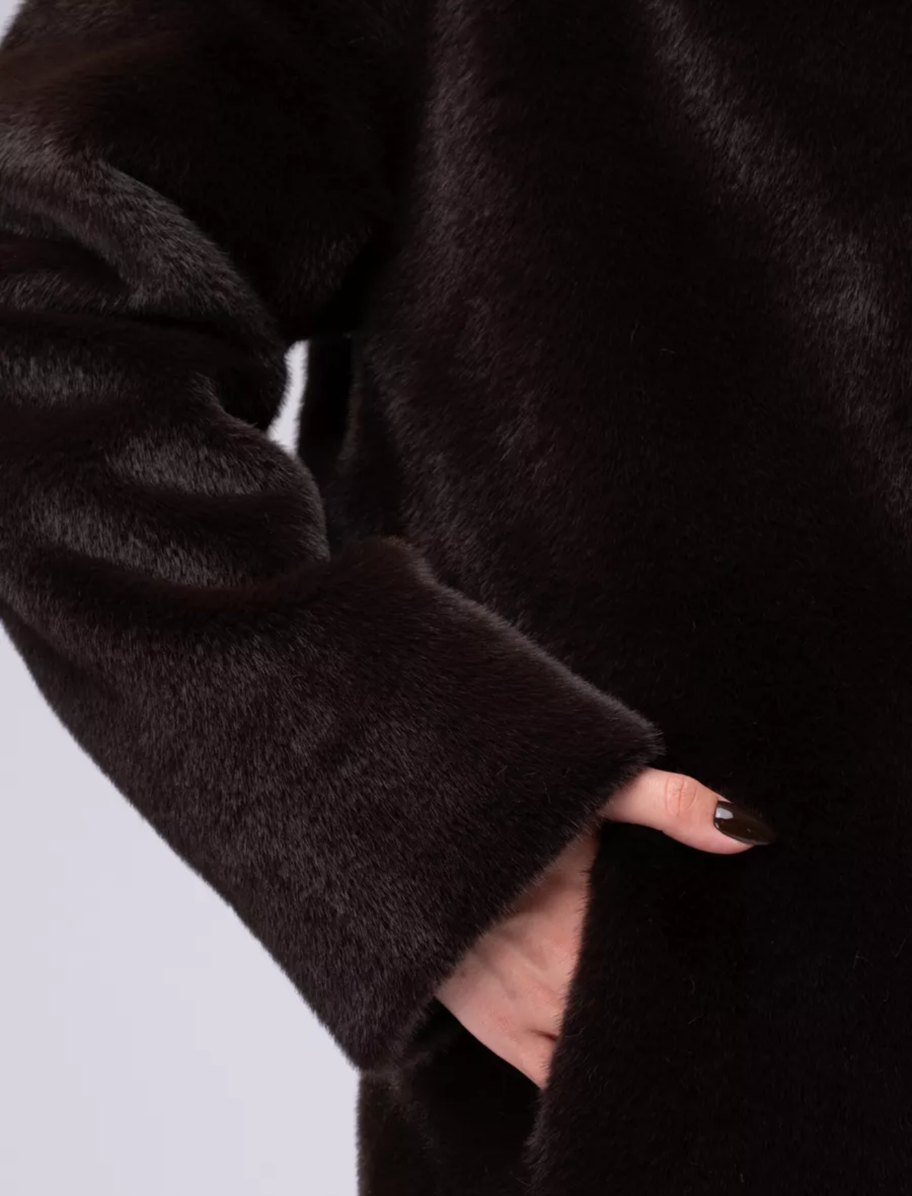 Elegant, refined and perfect for the cold season, this long faux fur coat brings a sophisticated touch to any outfit. The soft, dense and shiny texture offers a luxurious look without compromising comfort.