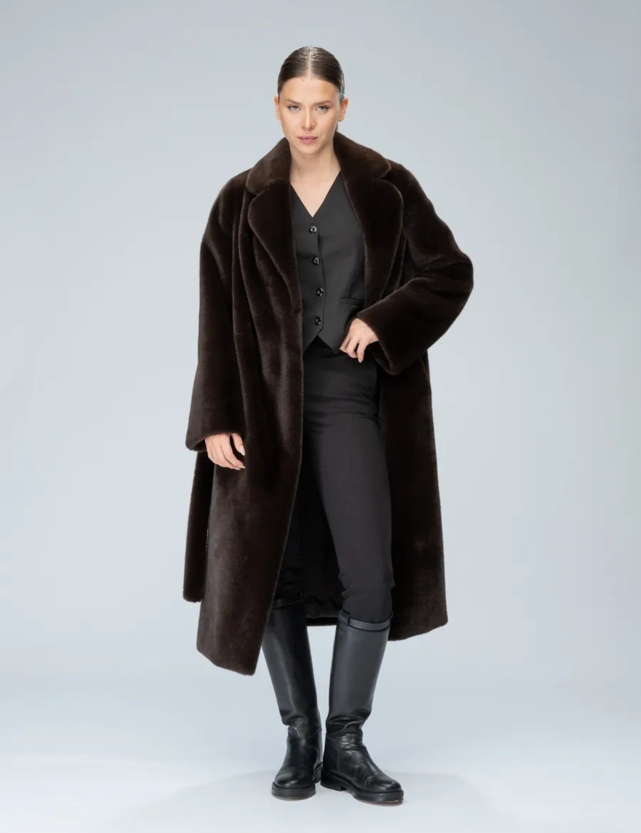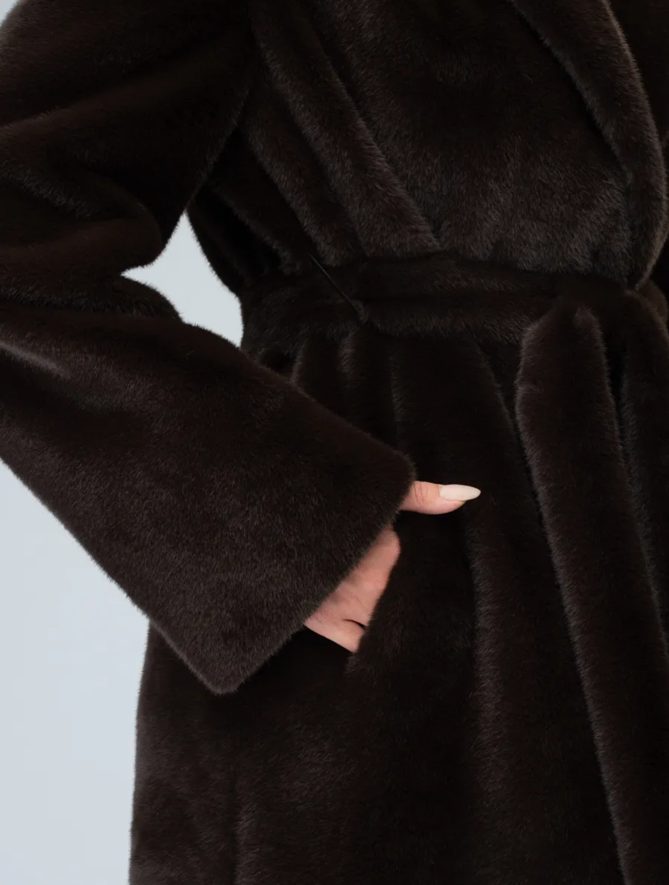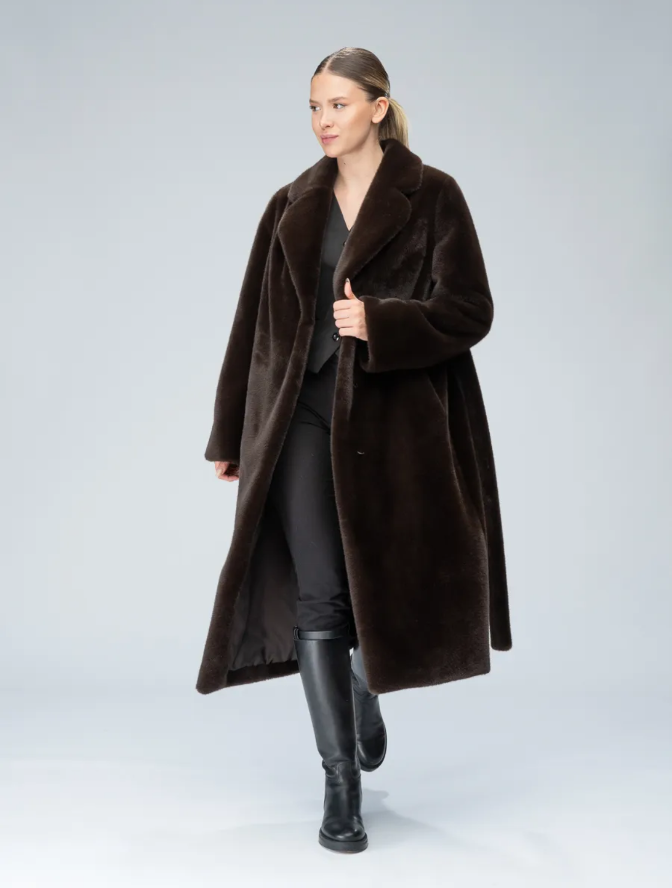 Elegantă, rafinată și perfectă pentru sezonul rece, această haină lungă din blană ecologică aduce o notă sofisticată oricărei ținute. Textura moale, densă și lucioasă oferă un aspect luxos, fără a compromite confortul.