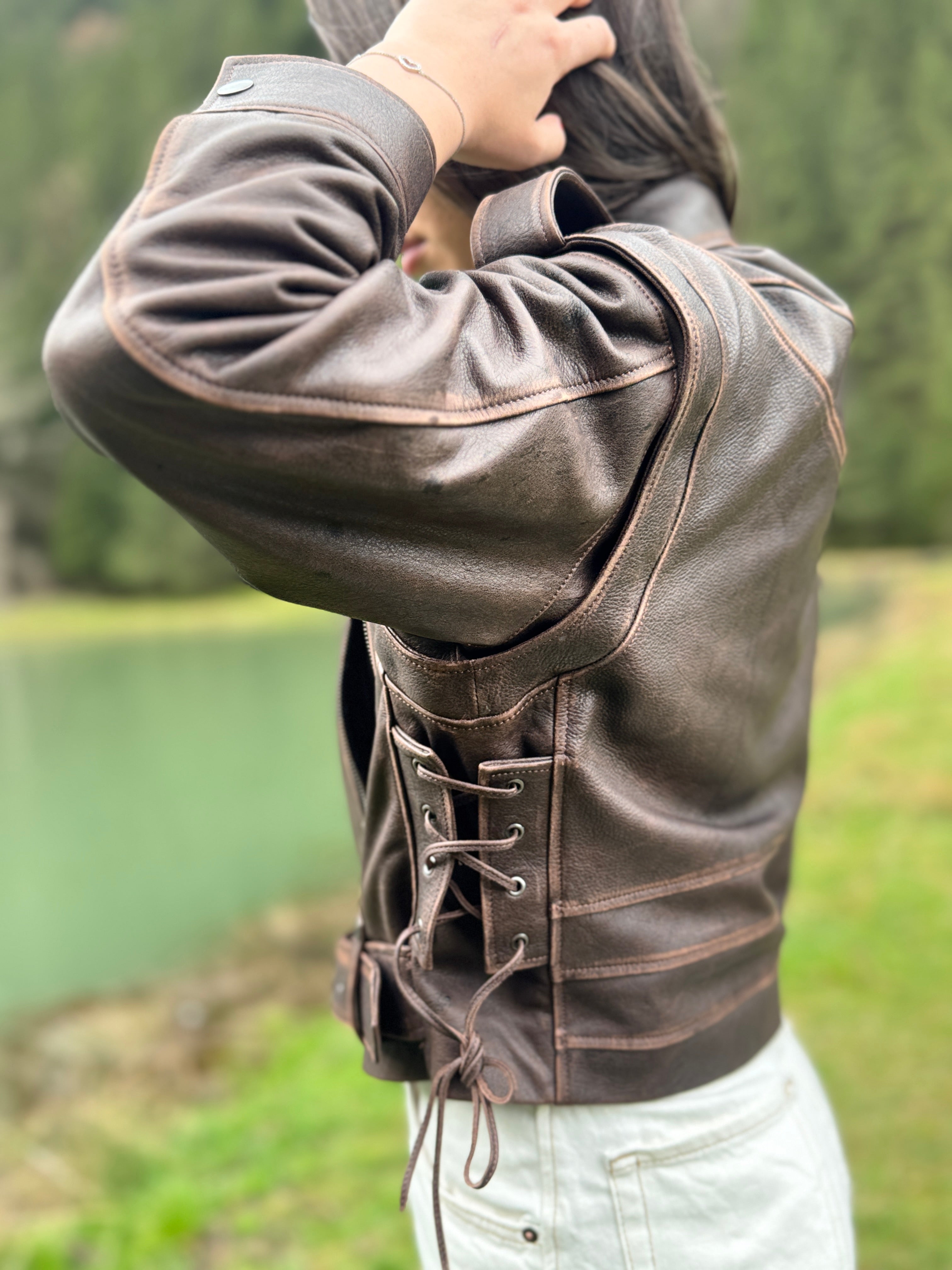 Redefine versatility with Adele , the statement jacket that combines classic leather design with a modern twist: detachable sleeves, for two looks in one piece. A smart choice for the wardrobe of the modern woman who seeks style, comfort and functionality.