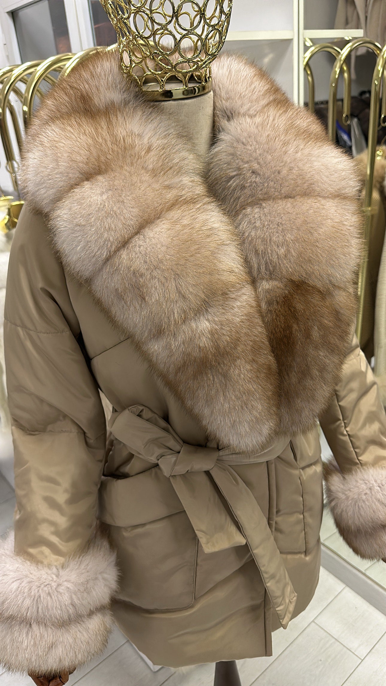 Polina is a premium winter jacket, made of high-quality quilted fleece and accessorized with a natural mink fur collar and cuffs. The combination of functionality and luxury makes this piece an ideal choice for women who want an elegant, modern and warm look. The slightly fitted cut, along with the drawstring at the waist, offers a feminine and well-defined silhouette.
