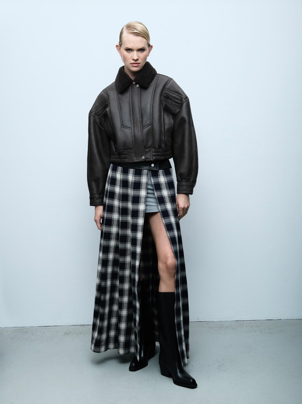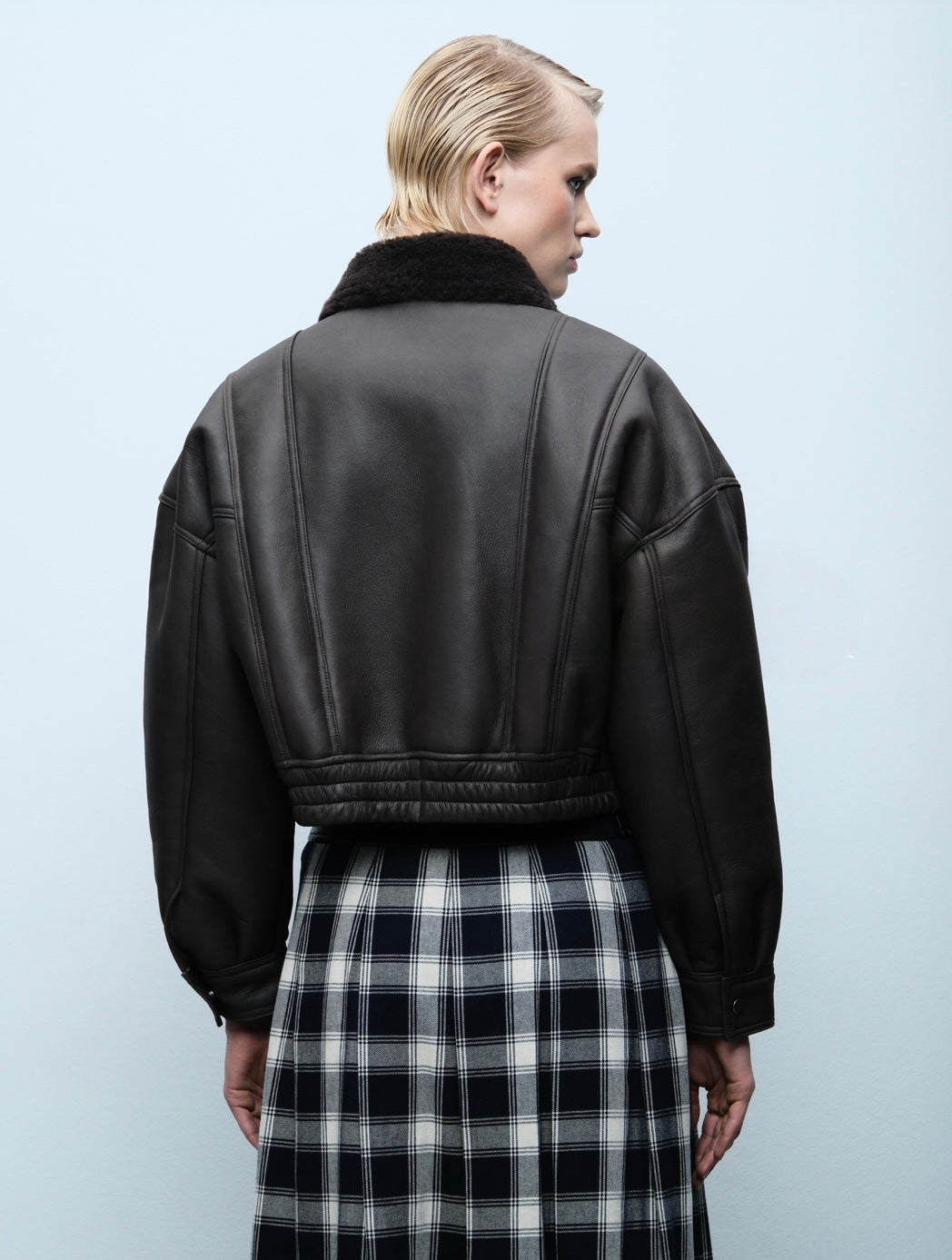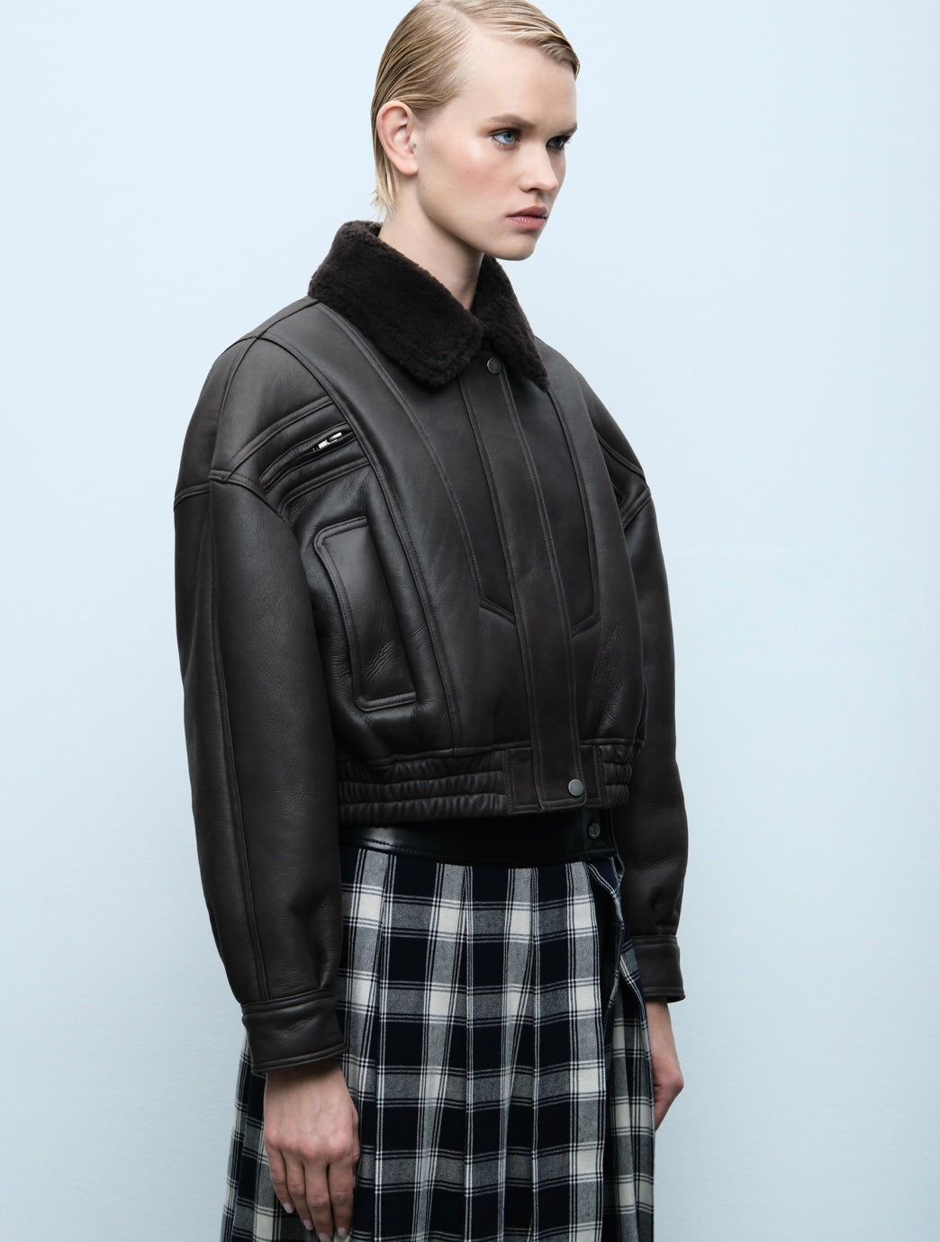 Tanya is a bomber jacket reinterpreted in a modern version, with masculine lines and a strong aesthetic. The 100% genuine leather exterior provides structure and durability, while the fur-lined interior and ample natural fur collar ensure excellent thermal comfort in the cold season.
