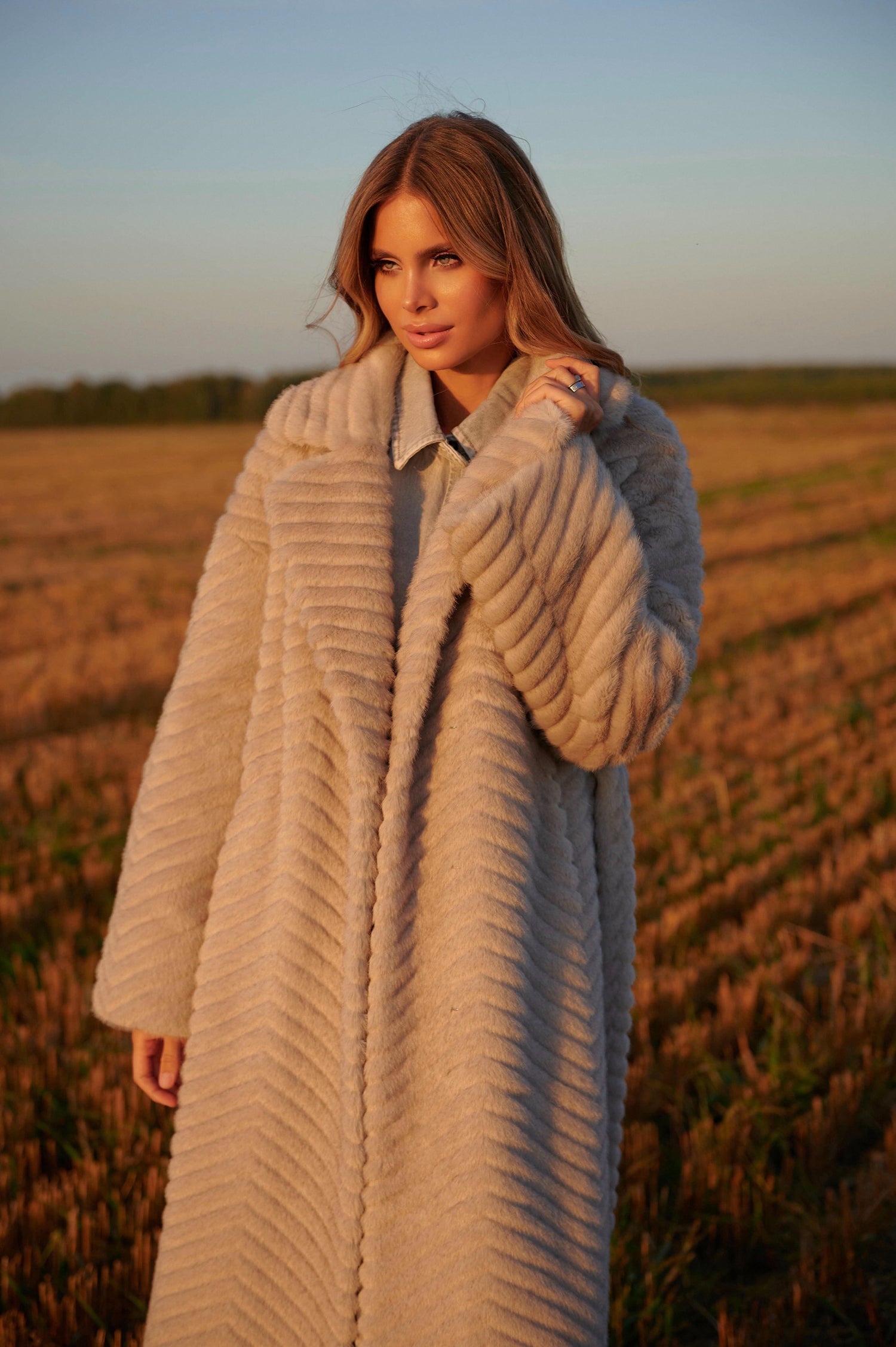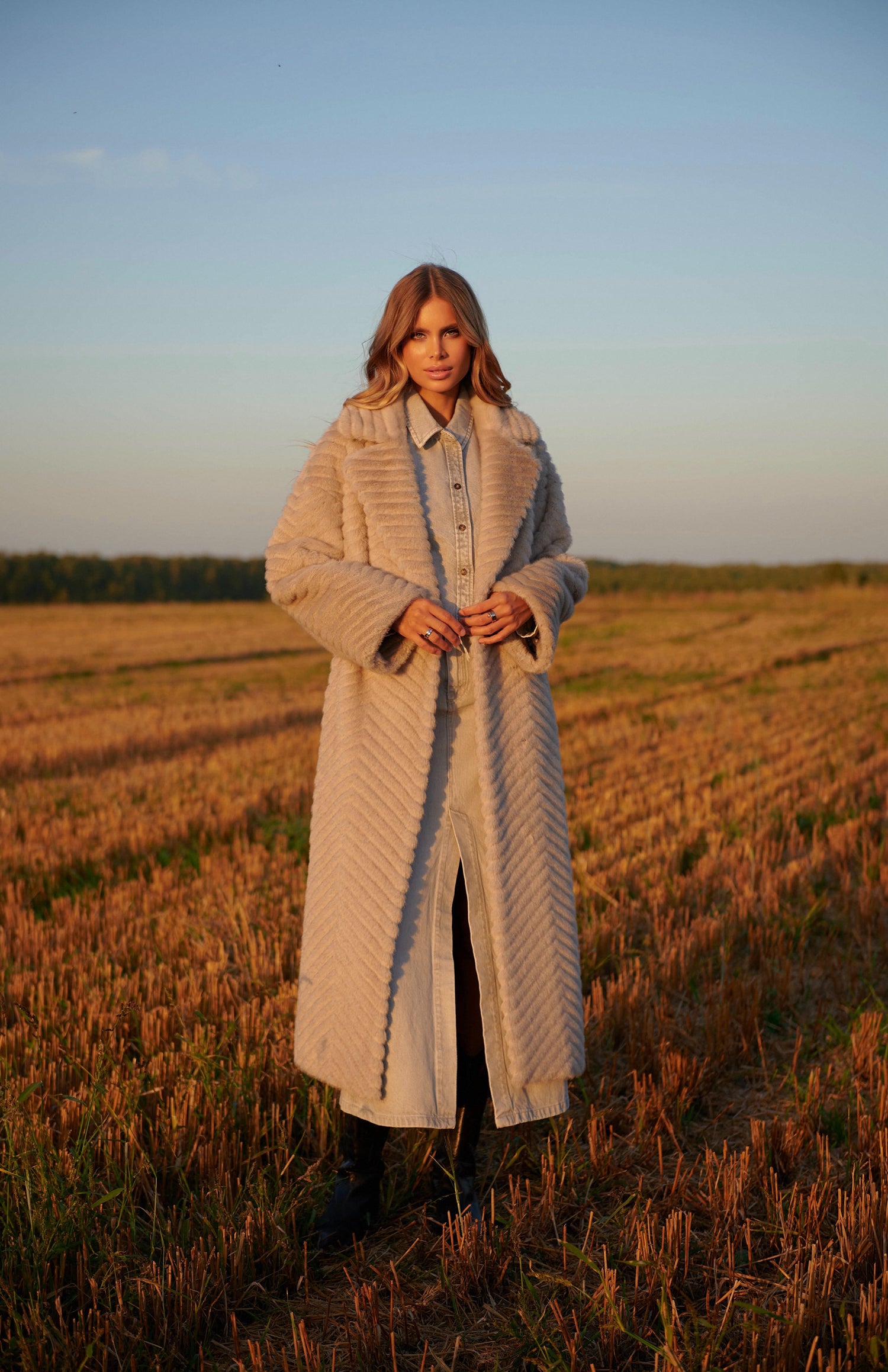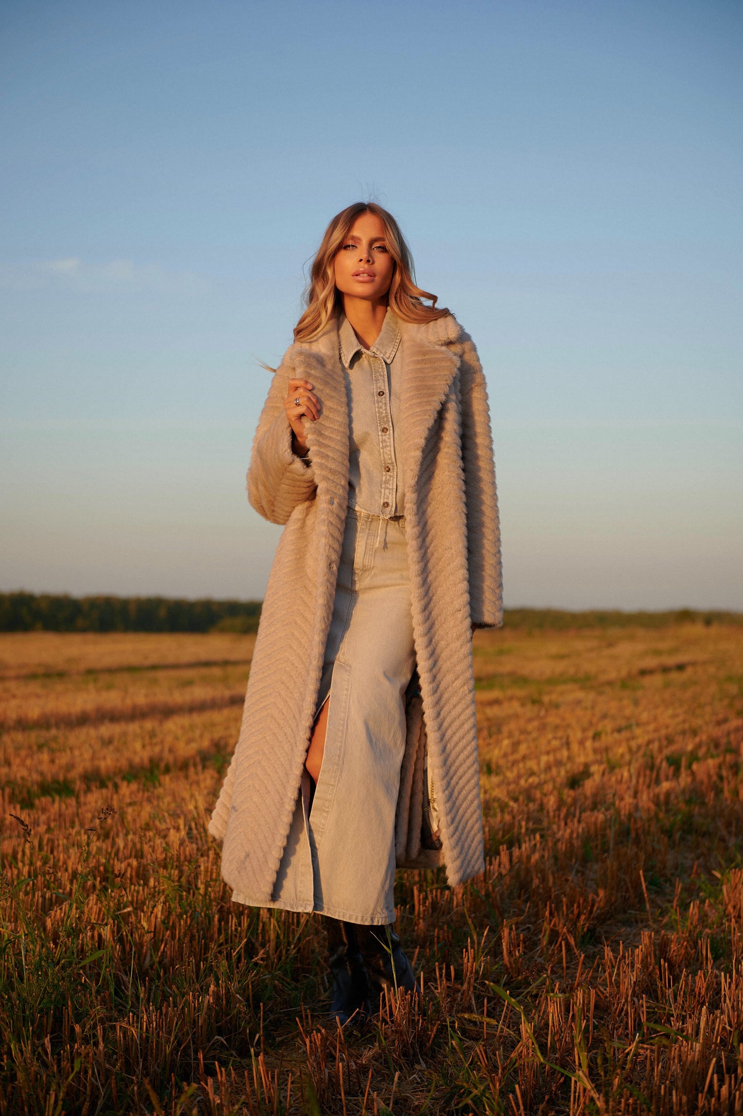 Bianca este jacheta din blană ecologică care redefinește eleganța naturală. Cu o textură luxuriantă, moale și o nuanță caldă de crem, această piesă este ideală pentru femeile care își doresc confort, stil și un look sofisticat, fără compromisuri. Croiala lungă, fluidă, împreună cu modelul în V subtil inserat în blană, creează o siluetă armonioasă și feminină, perfectă pentru zilele reci sau pentru apariții speciale.