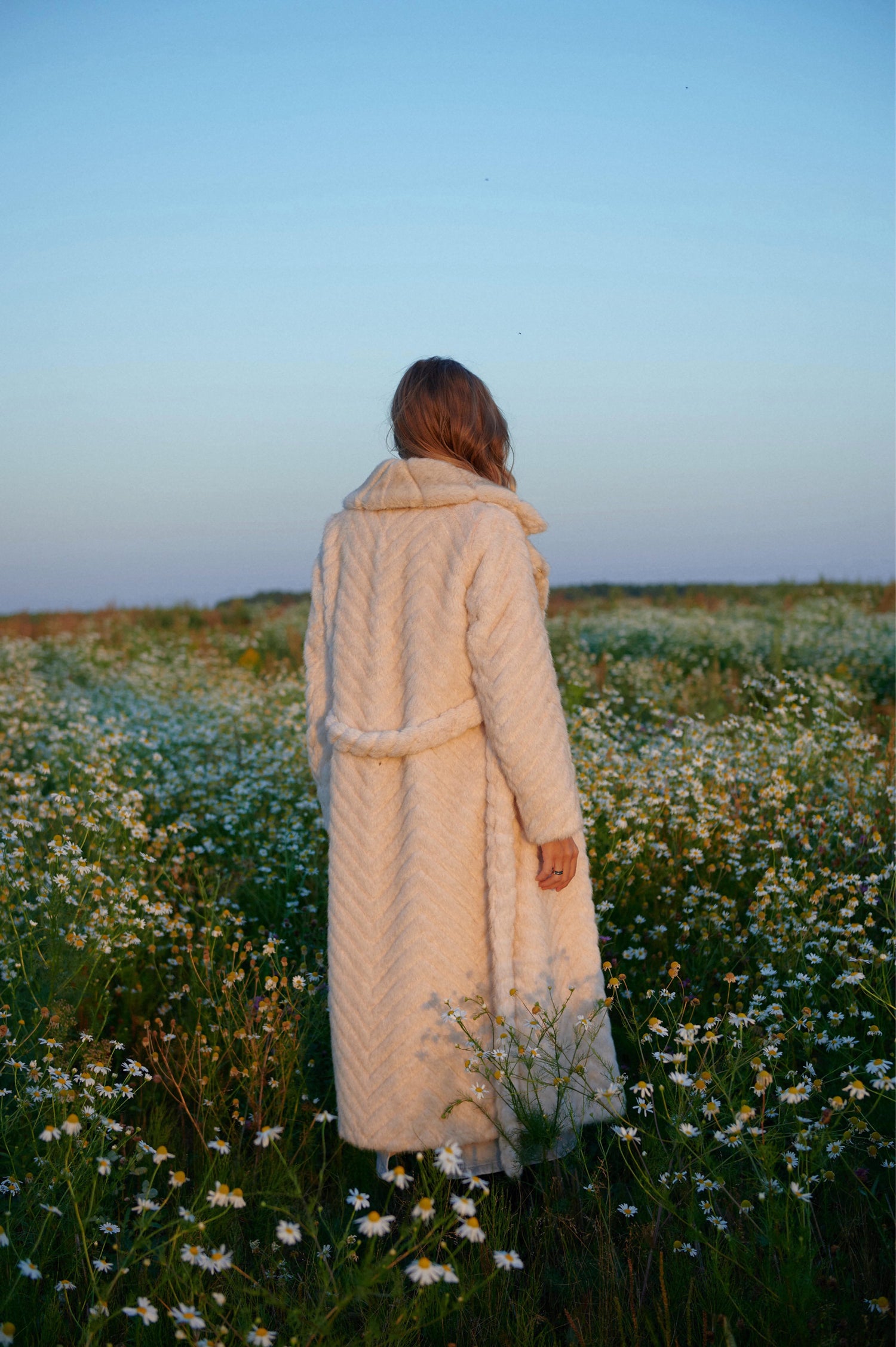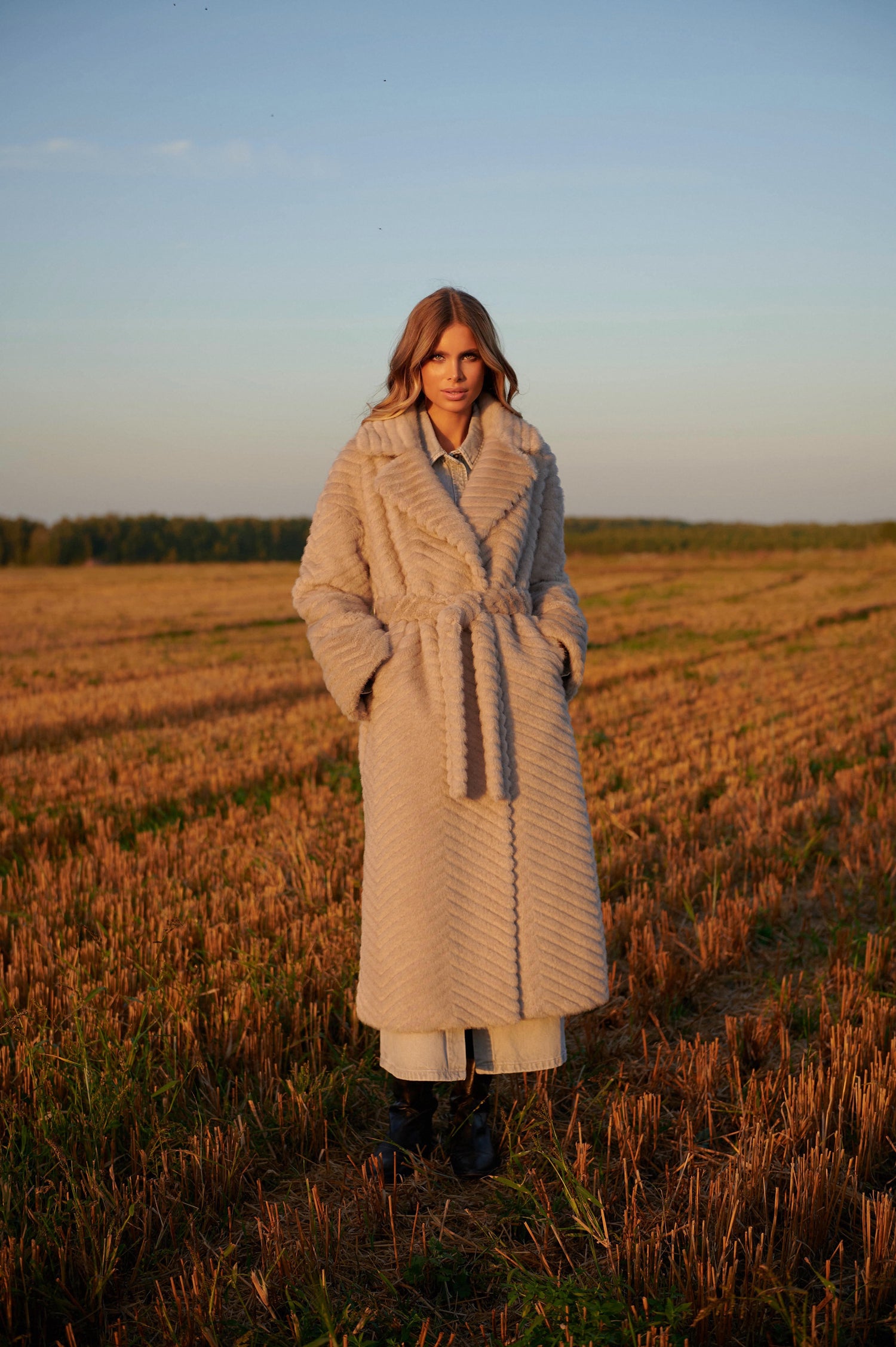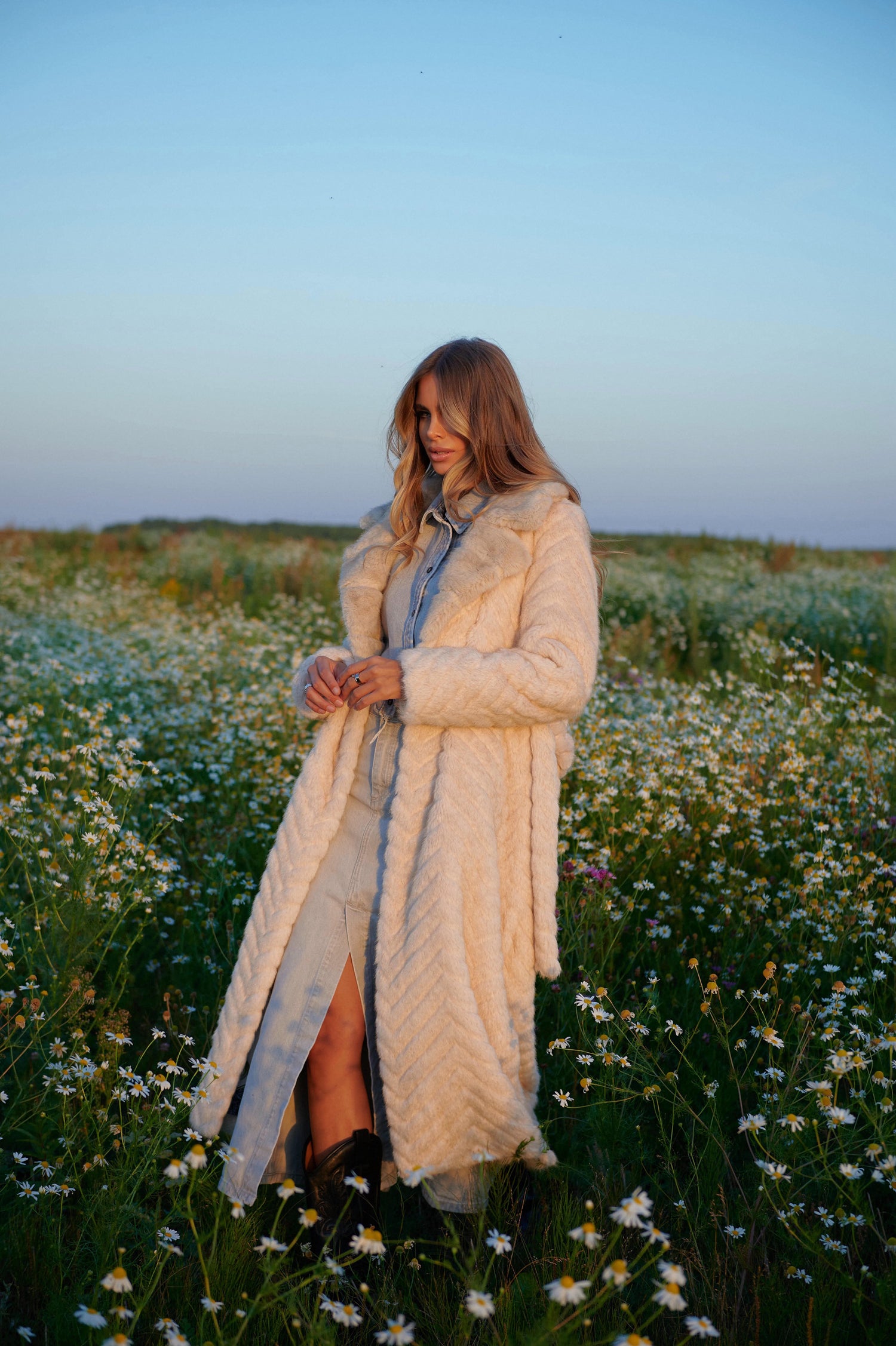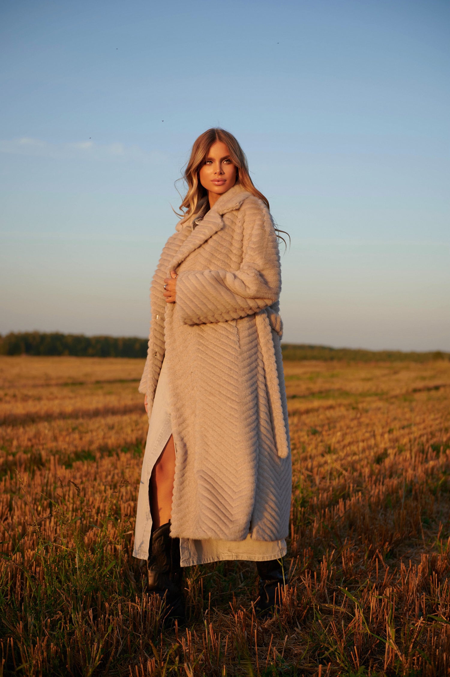 Bianca este jacheta din blană ecologică care redefinește eleganța naturală. Cu o textură luxuriantă, moale și o nuanță caldă de crem, această piesă este ideală pentru femeile care își doresc confort, stil și un look sofisticat, fără compromisuri. Croiala lungă, fluidă, împreună cu modelul în V subtil inserat în blană, creează o siluetă armonioasă și feminină, perfectă pentru zilele reci sau pentru apariții speciale.