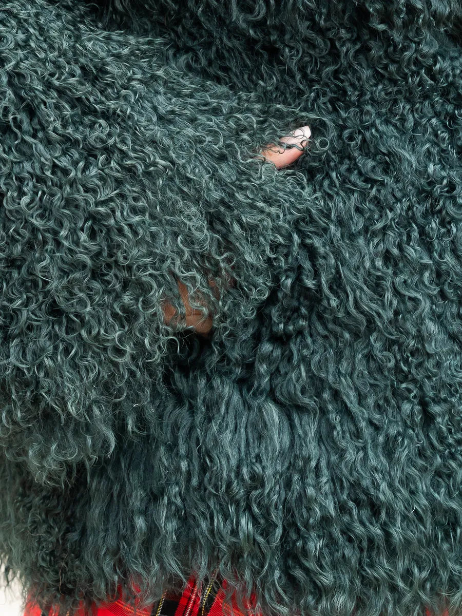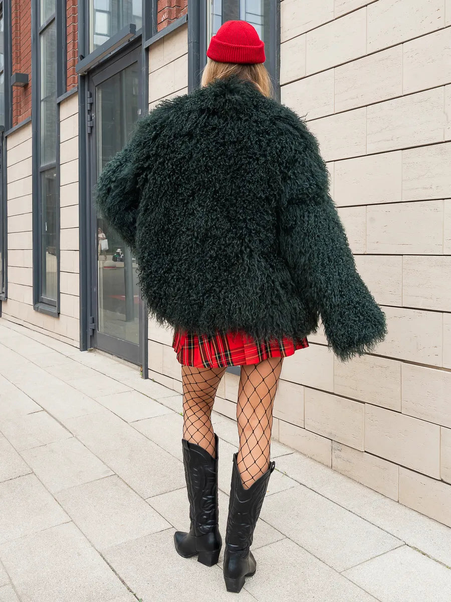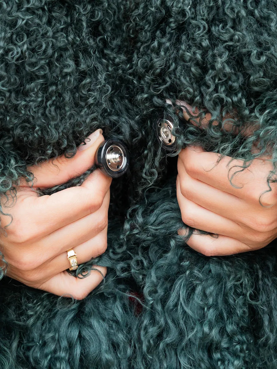 Ingrid incarne à la perfection le raffinement urbain, réinterprété avec modernité et audace. Confectionné en fourrure naturelle de mouton mongol, ce manteau séduit par sa texture dense et légèrement bouclée, ainsi que par sa teinte vert émeraude profonde qui confère élégance et originalité à toutes les tenues.