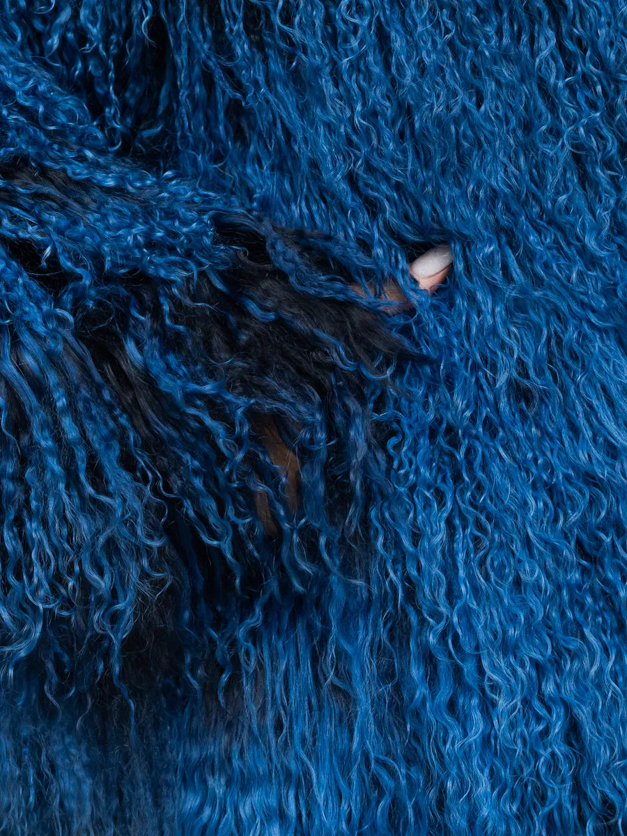 Selena est un manteau spectaculaire, créé pour la femme qui aime se démarquer par son raffinement et ses couleurs. Confectionné en fourrure naturelle de mouton mongol, dans des nuances vibrantes de bleu profond, ce manteau allie la douceur et le volume des fibres naturelles à une coupe élégante et moderne.
