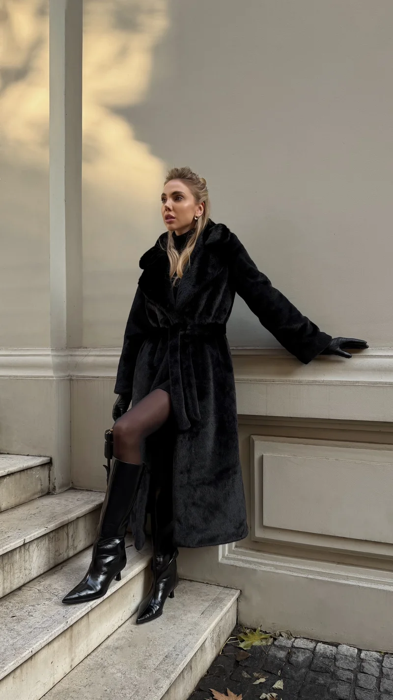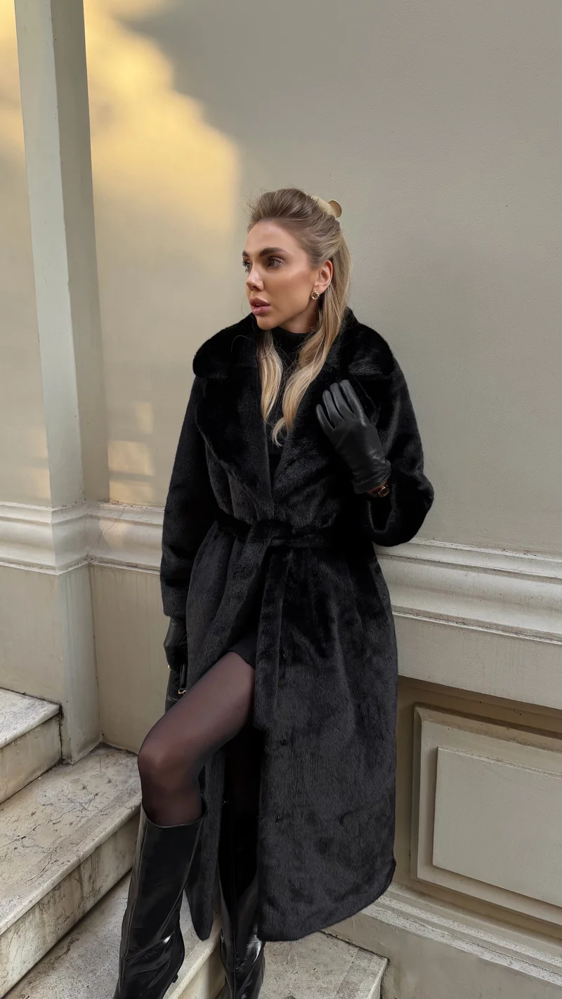 Un manteau qui respire le raffinement et l'élégance classique, réinterprété dans une version durable. Ce long manteau en fausse fourrure écologique Blackglama, imitation vison, est le choix idéal pour la femme qui apprécie le luxe discret et le confort absolu. Sa texture douce, à l'aspect haut de gamme, offre une sensation de chaleur et de raffinement à chaque utilisation.