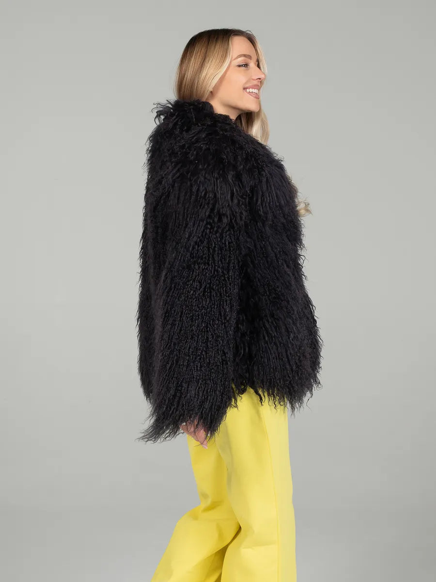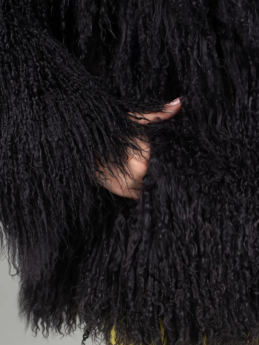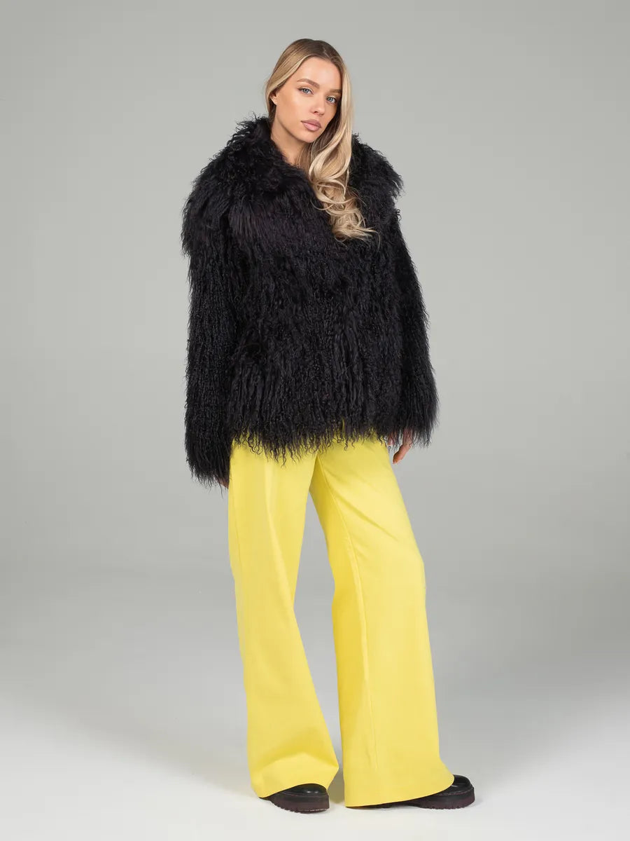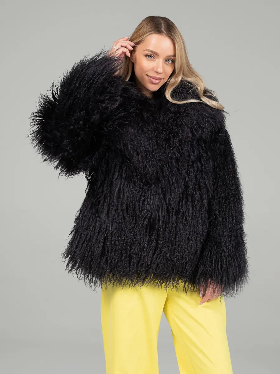 Selena este o piesă elegantă, îndrăzneață și plină de personalitate. Realizată din blană naturală din oaie mongoleza, se remarcă prin textura bogată și nuanța intensă de negru care adaugă un aer de mister și rafinament. Croiala amplă și gulerul englezesc transformă această haină într-o alegere ideală pentru femeile care vor să iasă în evidență printr-un stil sofisticat și atemporal.