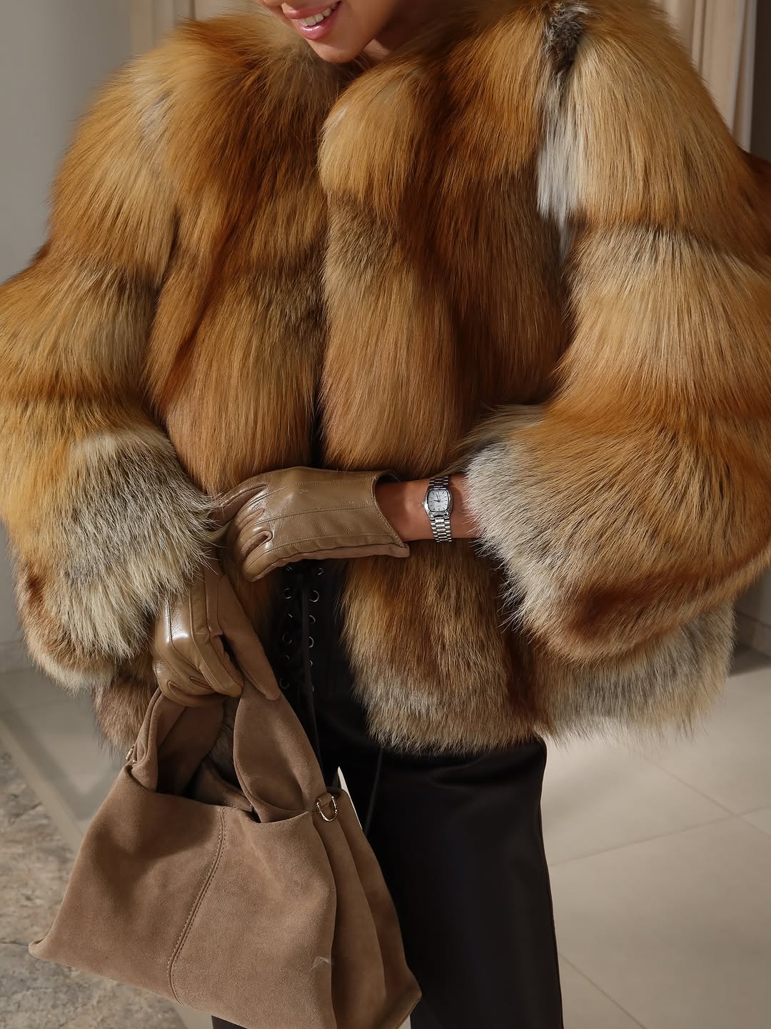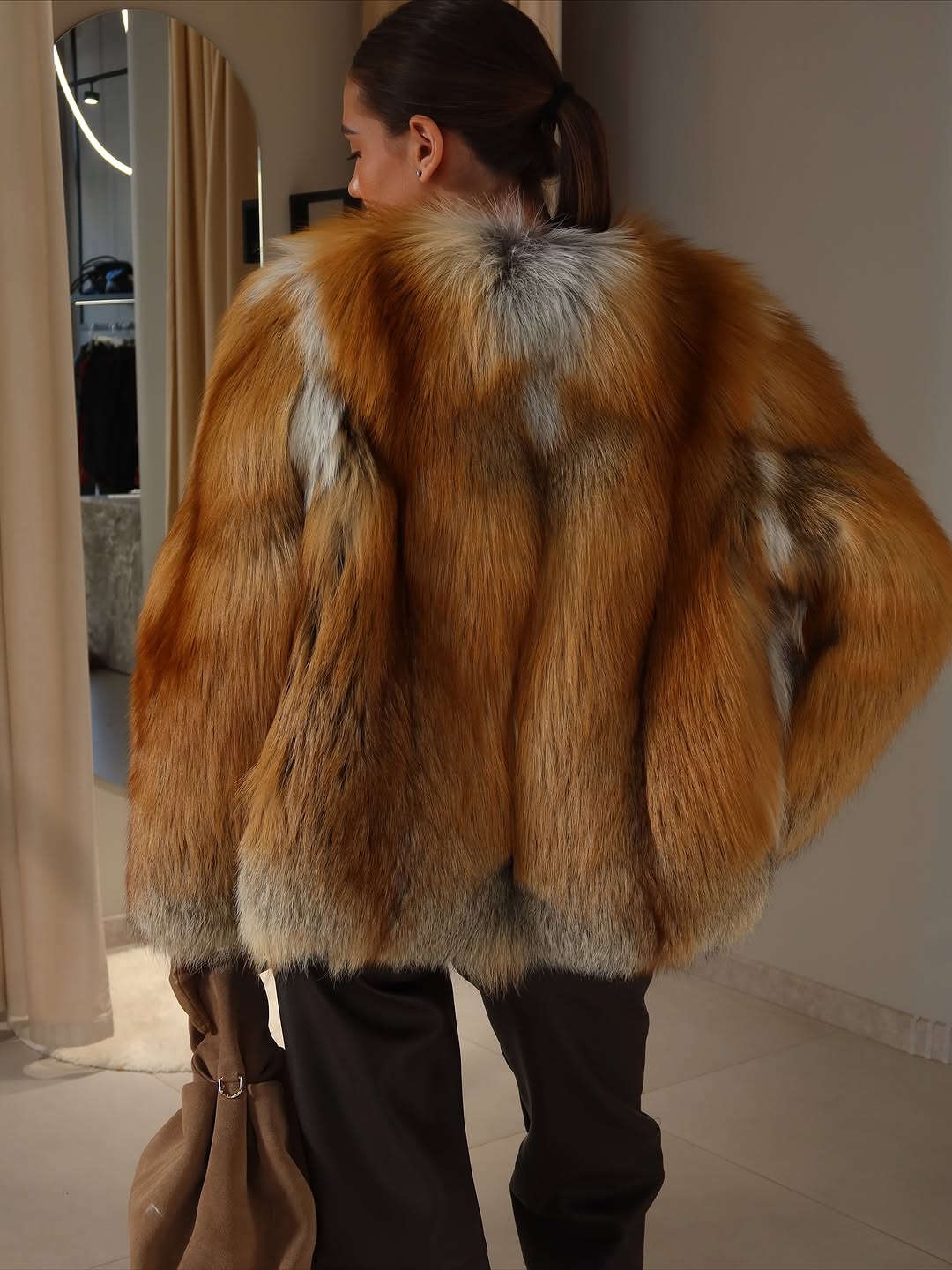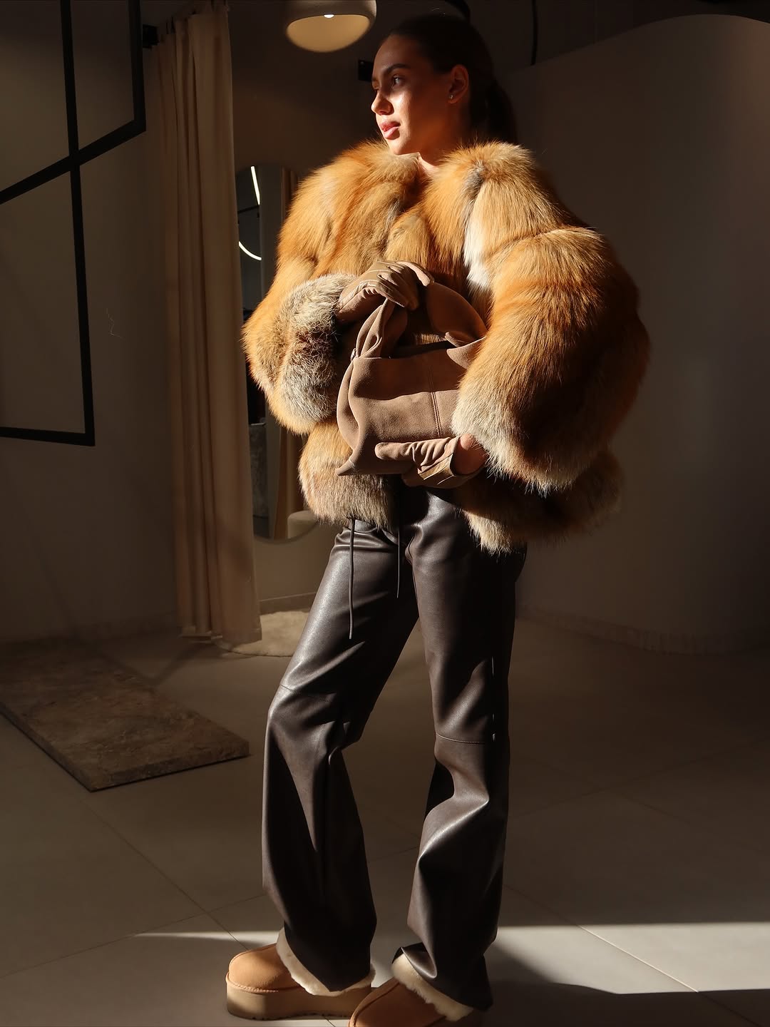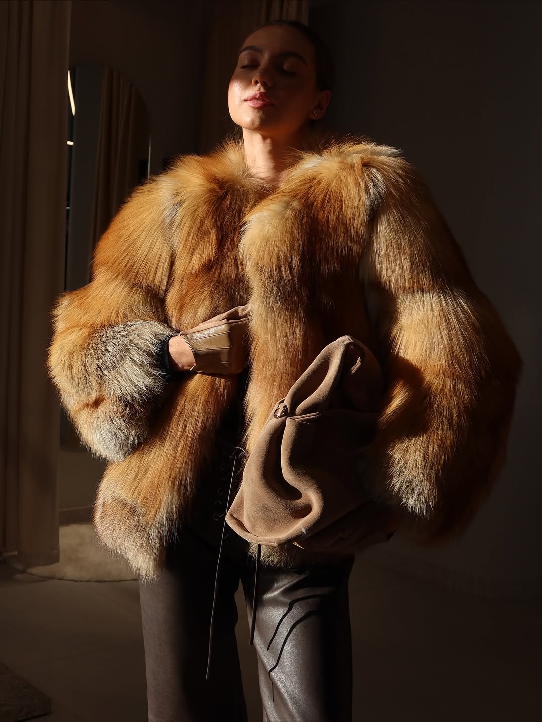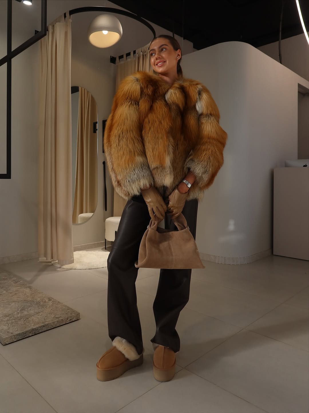 Jacheta Alsou este o piesă de lux care emană eleganță și rafinament absolut. Realizată din blană naturală de vulpe canadiană, această jachetă se remarcă prin textura sa densă și lucioasă, nuanțele calde de arămiu și croiala modernă care pune în valoare orice siluetă. Fiecare detaliu reflectă măiestria meșteșugarilor și calitatea premium a materialelor utilizate.