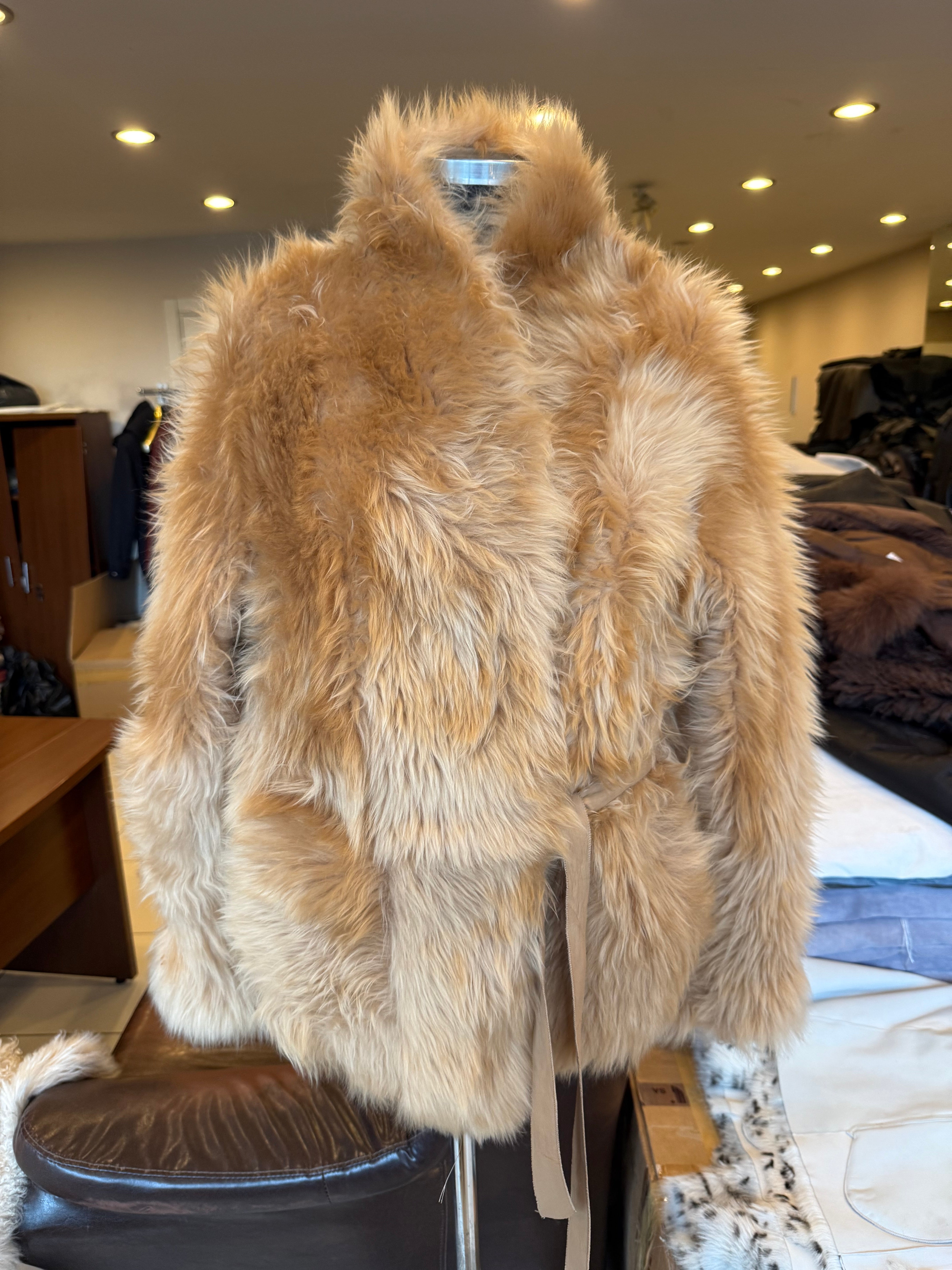 Anastasia este un cojoc realizat din blană naturală de oaie Toscana, recunoscută pentru firele sale lungi, mătăsoase și pentru volumul spectaculos. Nuanța caldă de caramel evidențiază textura luxoasă a blănii, iar croiala lejeră, completată de cordonul din talie, oferă un aspect modern și elegant. O piesă ideală pentru femeile care apreciază atât confortul, cât și estetica premium.