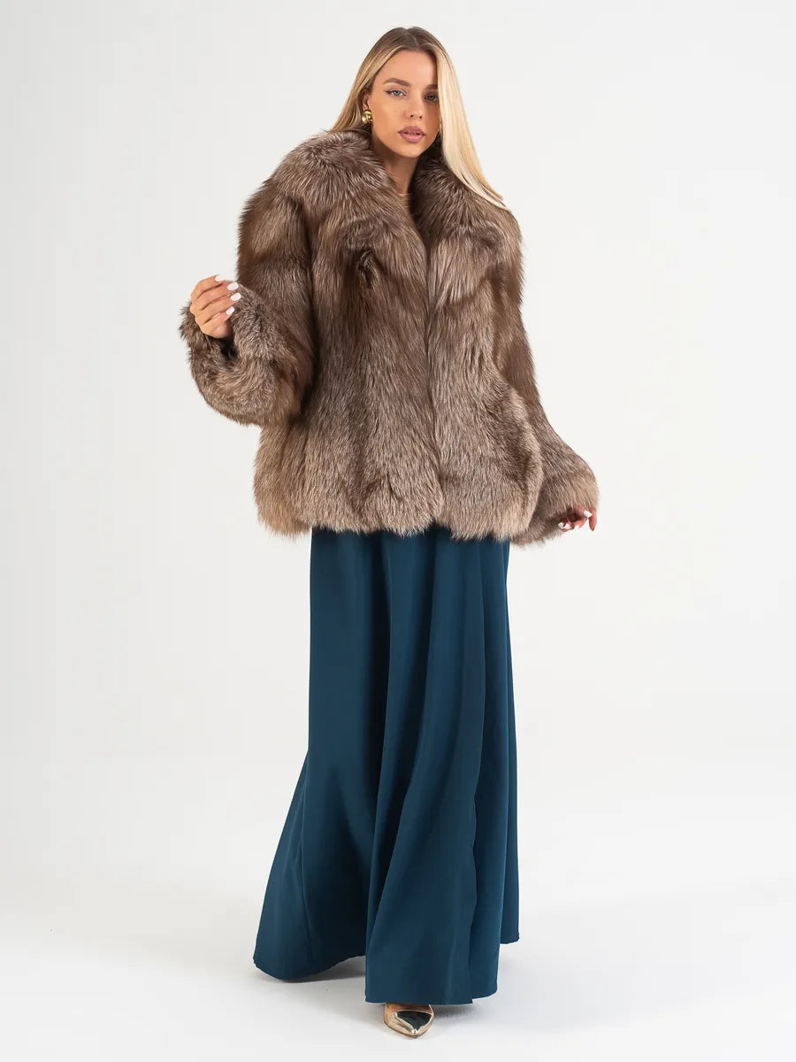 Sofia este o haină ce îmbină eleganța atemporală cu luxul autentic al blănii naturale de vulpe argintie. Cu o croială lejeră și un guler englezesc rafinat, această piesă oferă o apariție sofisticată și un confort desăvârșit, perfectă pentru zilele reci în care vrei să radiezi stil și clasă.