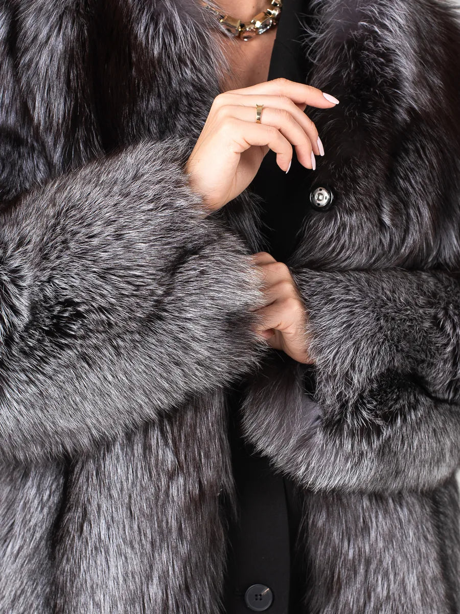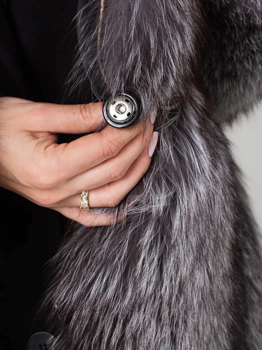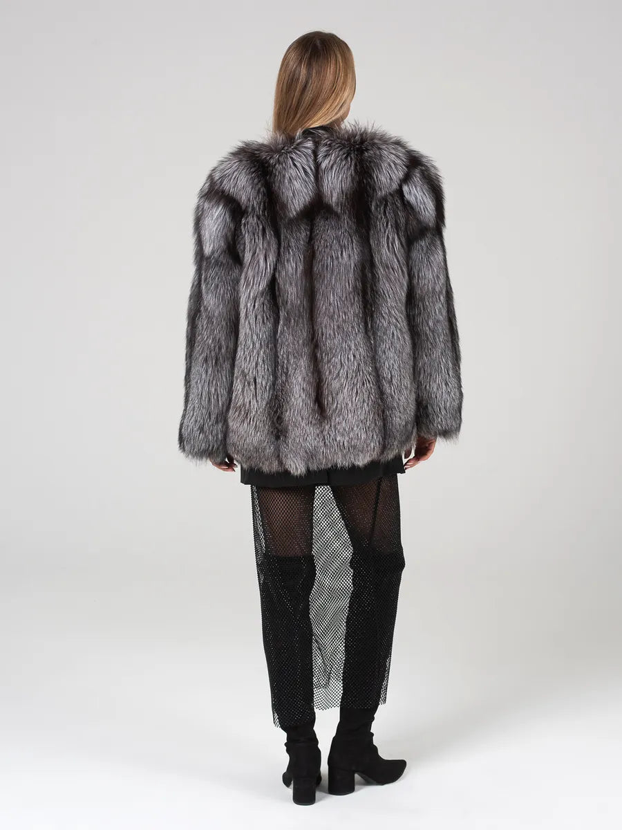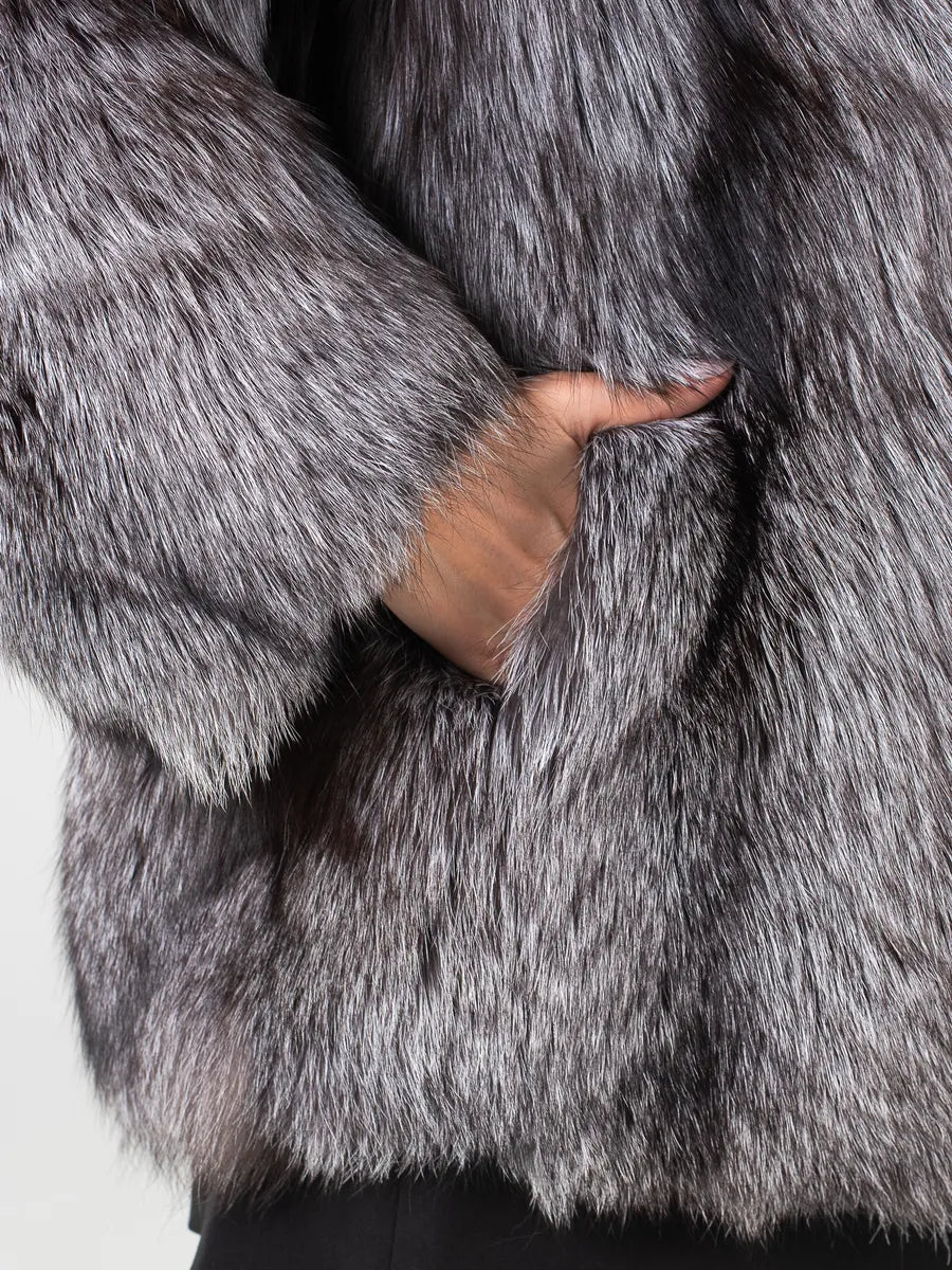 Irina – Haină scurtă din blană naturală de vulpe argintie cu guler în formă de V