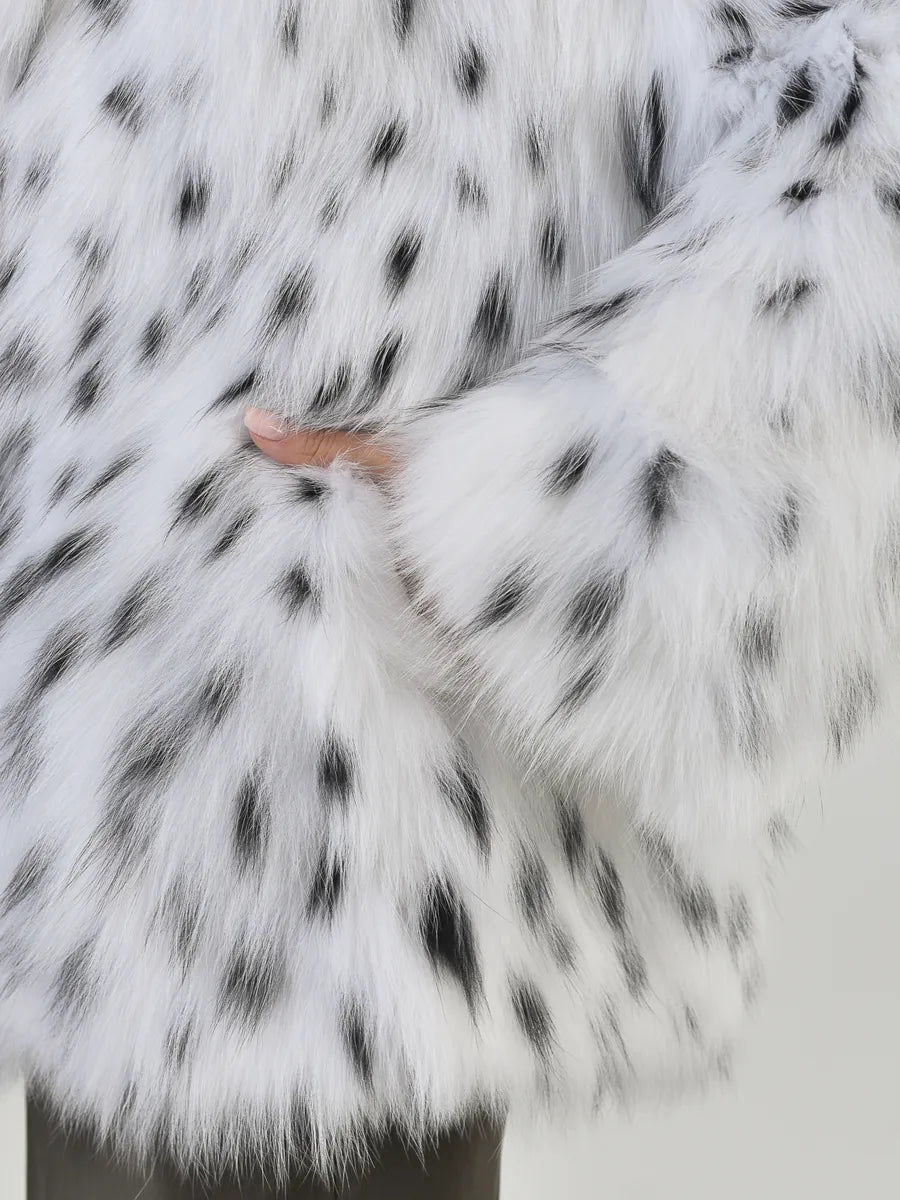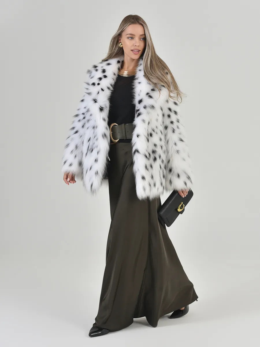 Sofia este o piesă spectaculoasă, cu un aer nobil și rafinat, inspirată de eleganța atemporală a iernilor nordice. Confecționată din blană naturală de vulpe arctică, această haină impresionează prin textura sa luxoasă și modelul distinct cu pete negre naturale, ce conferă unicitate fiecărei piese.