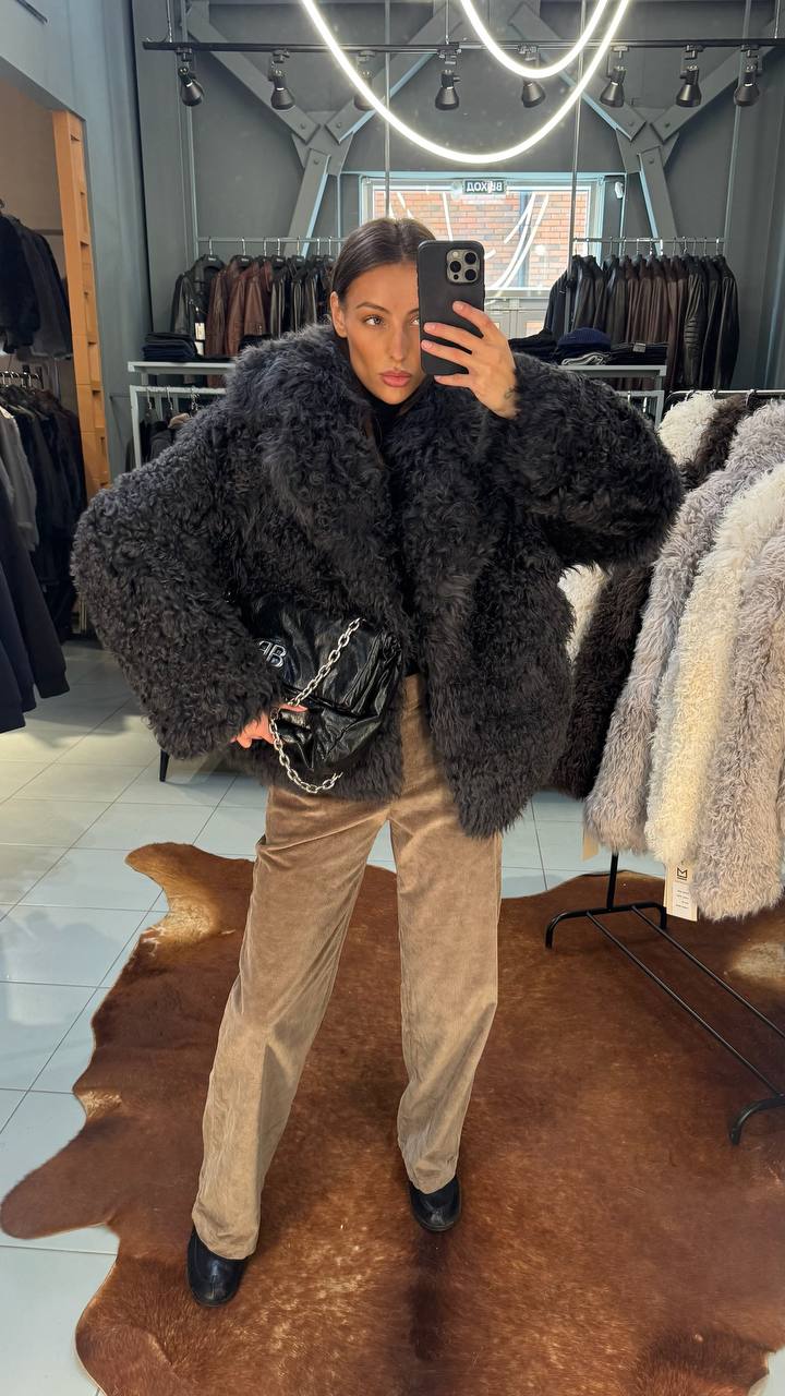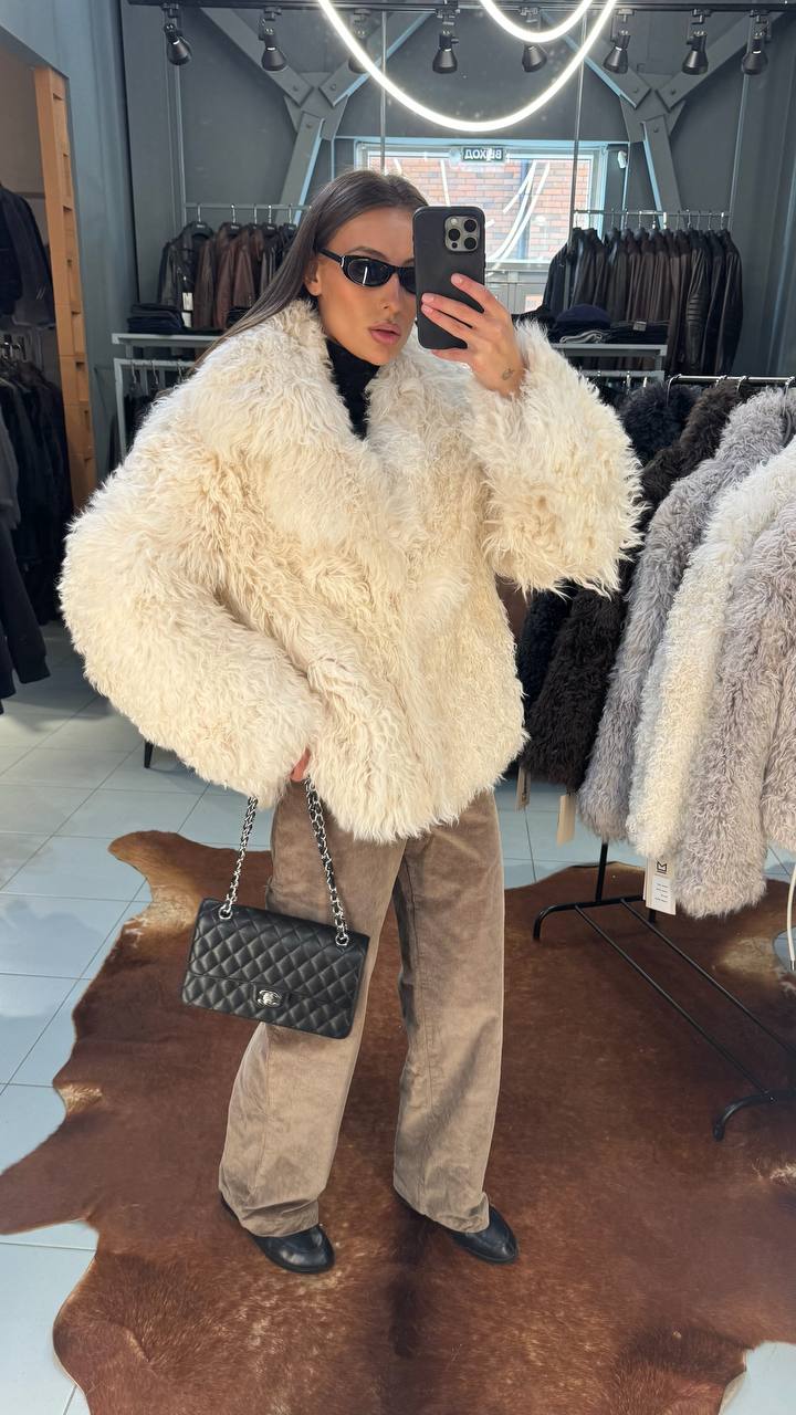 Haina Flowery redefinește eleganța contemporană printr-o combinație perfectă între confort, volum și rafinament natural. Realizată din 100% blană naturală de oaie Tigrado, această piesă oferă o textură moale, aerată și o căldură plăcută, ideală pentru sezonul rece.