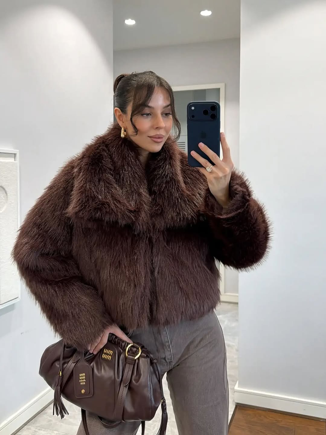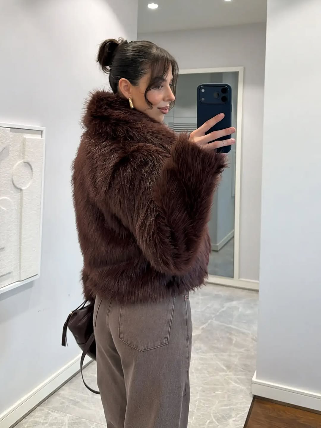 Isla este piesa ideală pentru femeia care iubește rafinamentul discret și eleganța contemporană. Confecționată din blană ecologică densă și moale, în nuanță bogată de ciocolatiu, această haină aduce căldură, stil și confort în egală măsură.
