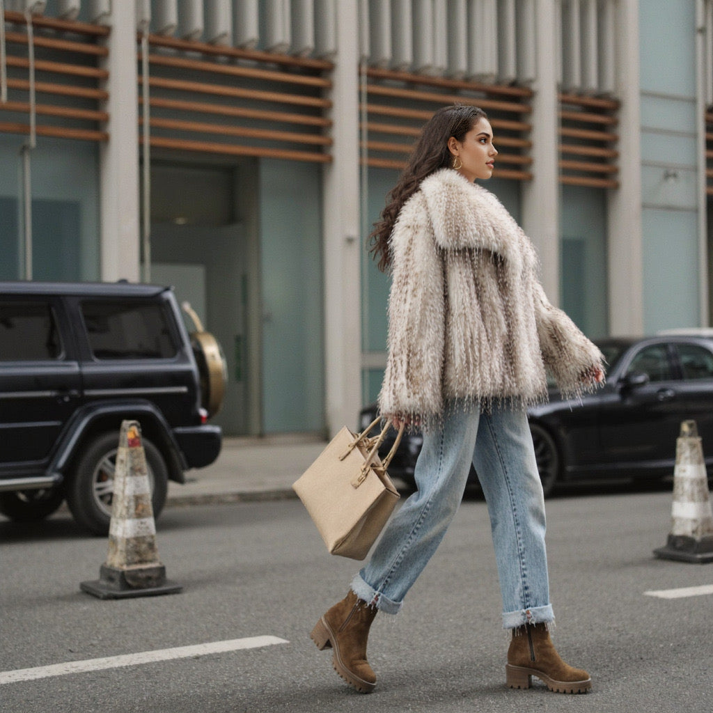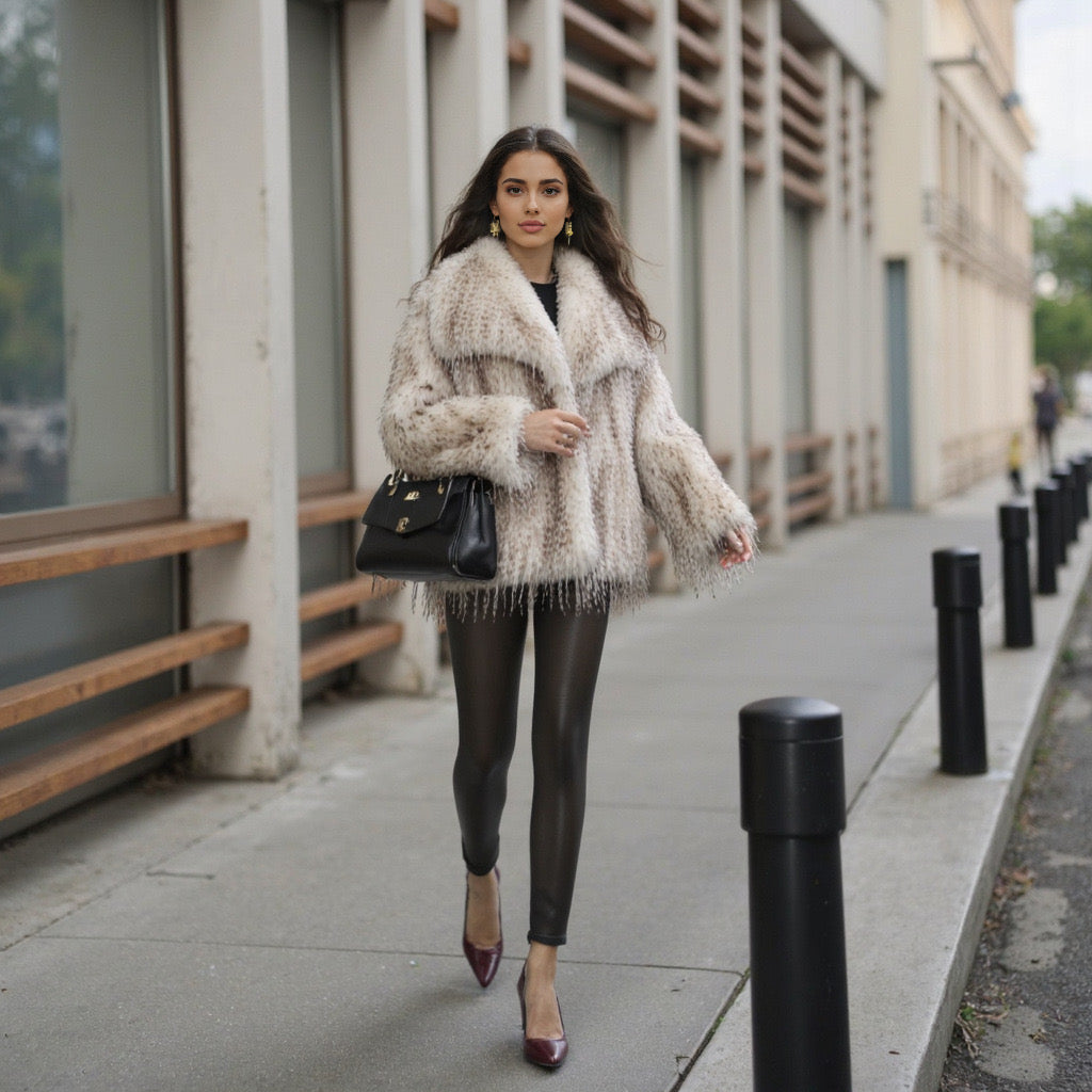 Această jachetă redefinește eleganța modernă printr-o textură spectaculoasă și o croială rafinată. Inspirată de luxul atemporal, jacheta din blană ecologică de struț cu revere este alegerea perfectă pentru femeia care își dorește o piesă sofisticată, dar ușor de purtat în orice context.