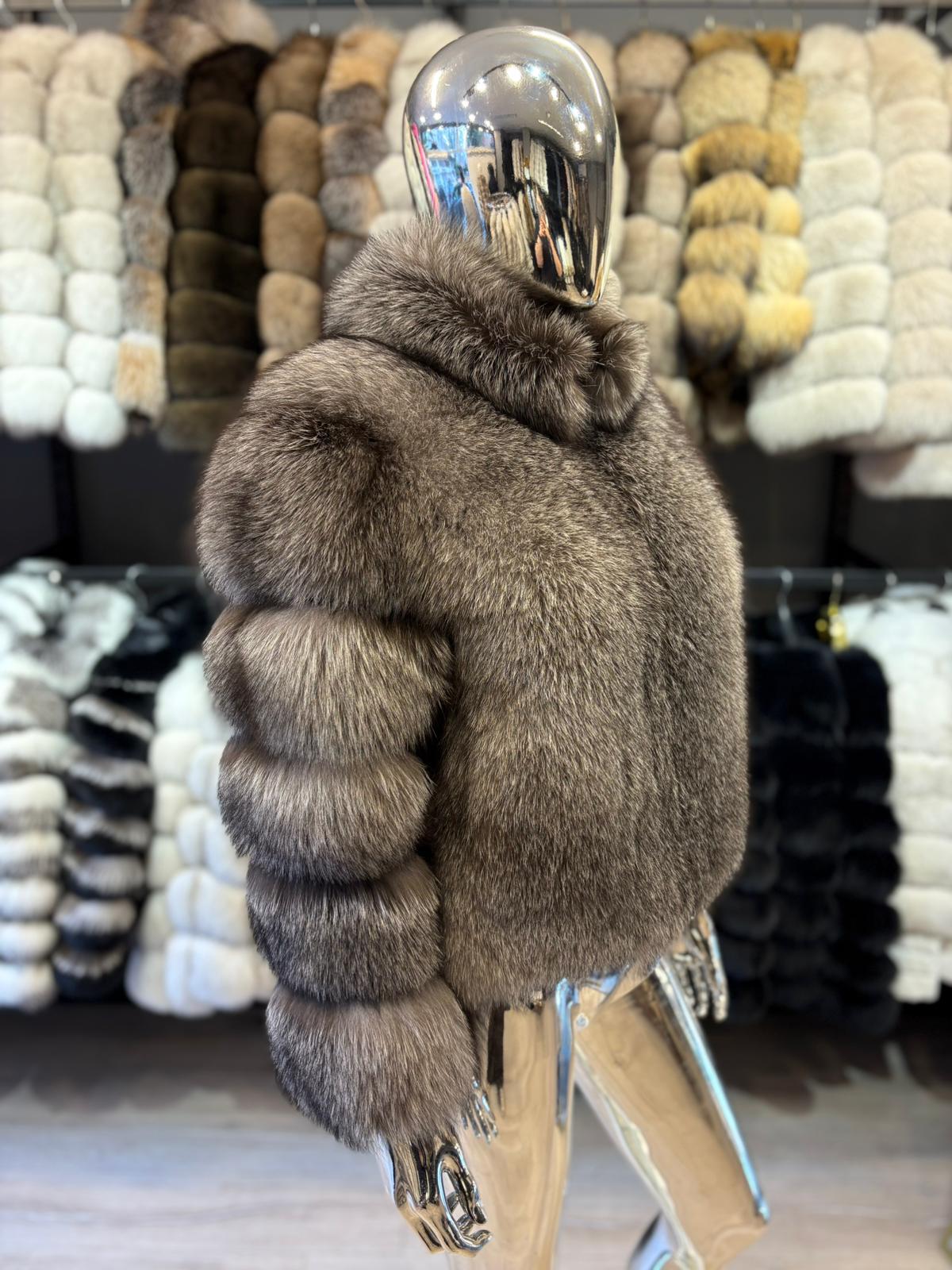 Eleganță pură într-o nuanță sofisticată de gri natural. Această jachetă din blană naturală de vulpe impresionează prin densitatea blănii, luciul rafinat și croiala scurtă ce pune în valoare talia. Modelul Grey Shade se remarcă prin tonurile reci, argintii, ce adaugă un aer modern și exclusivist oricărei ținute.