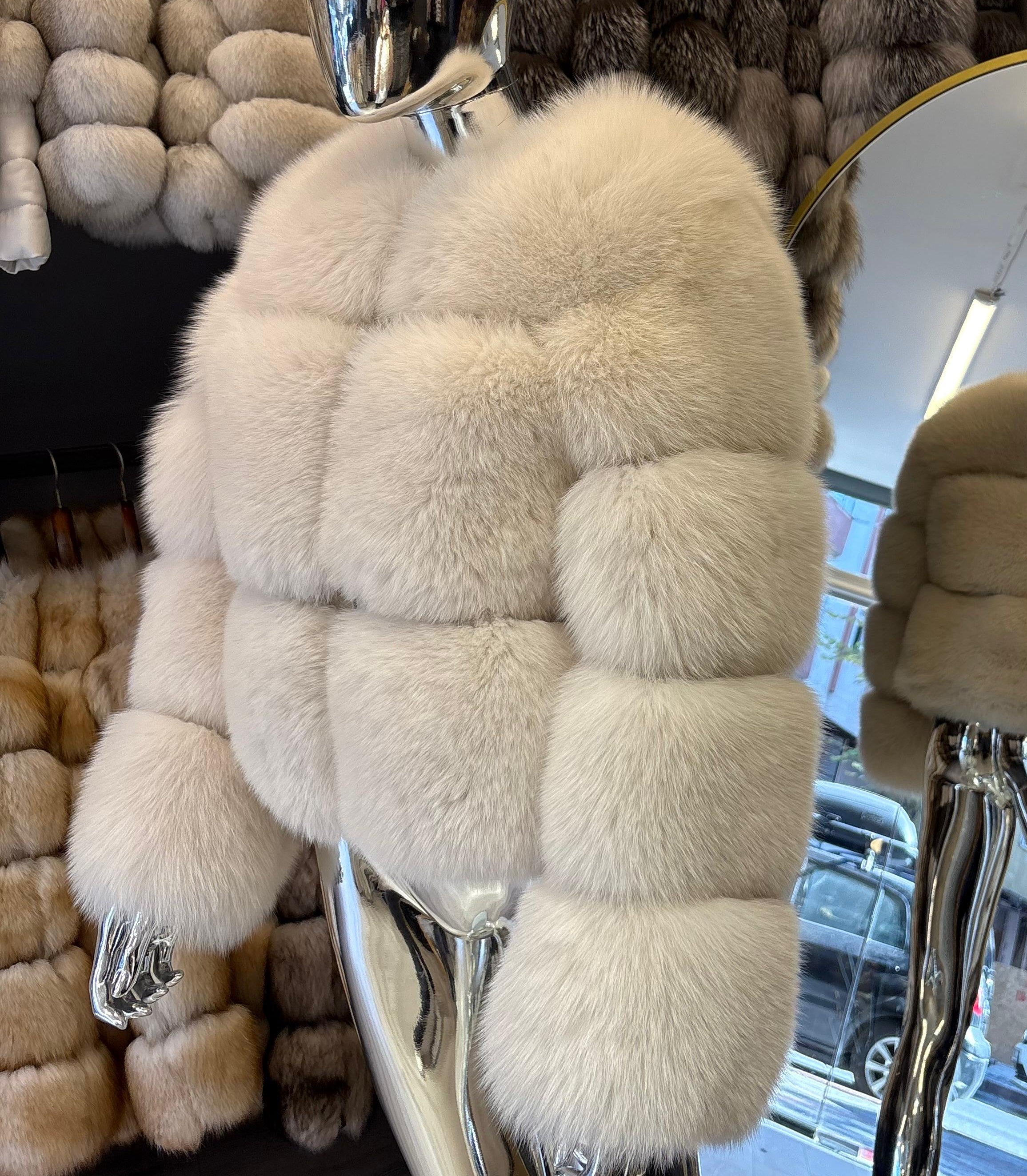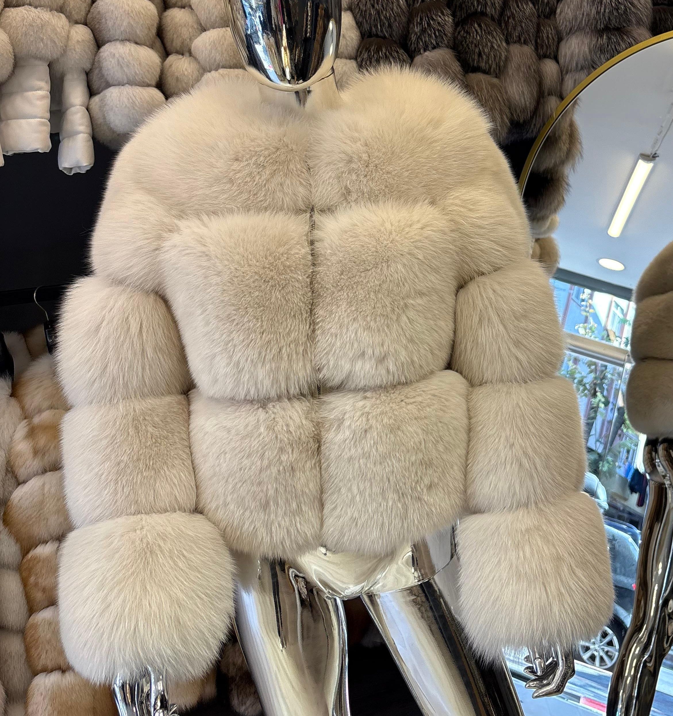 O piesă atemporală, definită de rafinament și eleganță clasică. Această jachetă scurtă din blană naturală de vulpe impresionează prin textura luxuriantă, finețea fibrei și volumul perfect echilibrat. Croiala modernă și nuanța naturală deschisă oferă o estetică sofisticată, potrivită atât pentru ținute de zi, cât și pentru apariții de seară.