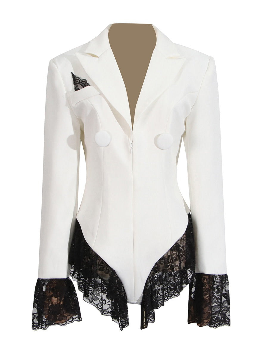 O reinterpretare elegantă a sacoului clasic, cu o croială feminină și accente romantice. Acest sacou pe talie cu detalii din dantelă combină perfect rafinamentul liniilor structurale cu delicatețea dantelei fine aplicate la tiv și manșete. O piesă versatilă, potrivită atât pentru evenimente speciale, cât și pentru apariții fashion de zi cu zi.