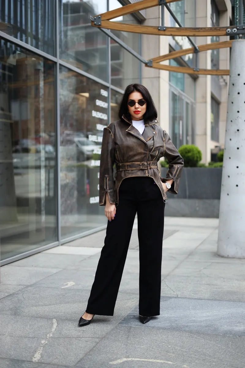Simina – Geacă biker vintage din piele naturală cu efect spălat, maro