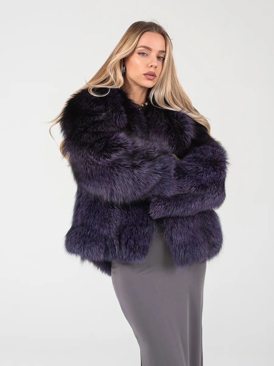 Rafinată, elegantă și cu o prezență puternică, haina Nora este o alegere sofisticată pentru femeia care iubește luxul discret. Realizată din blană naturală de vulpe argintie, în nuanțe profunde de violet închis, această piesă aduce un aer misterios și modern oricărei ținute.