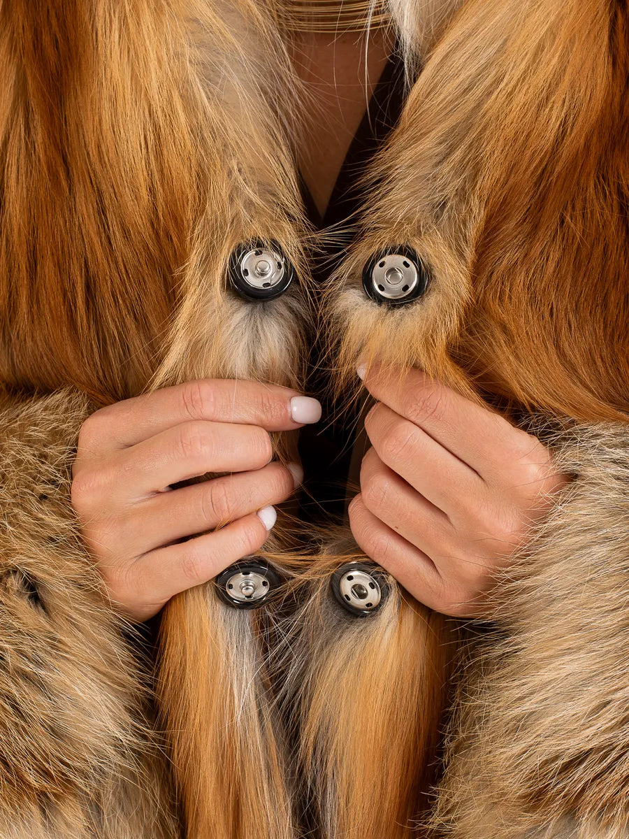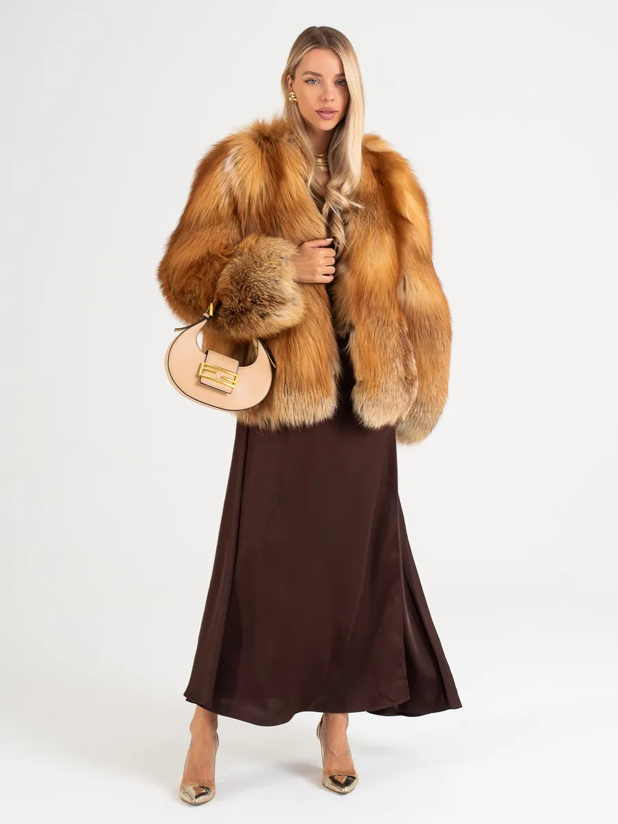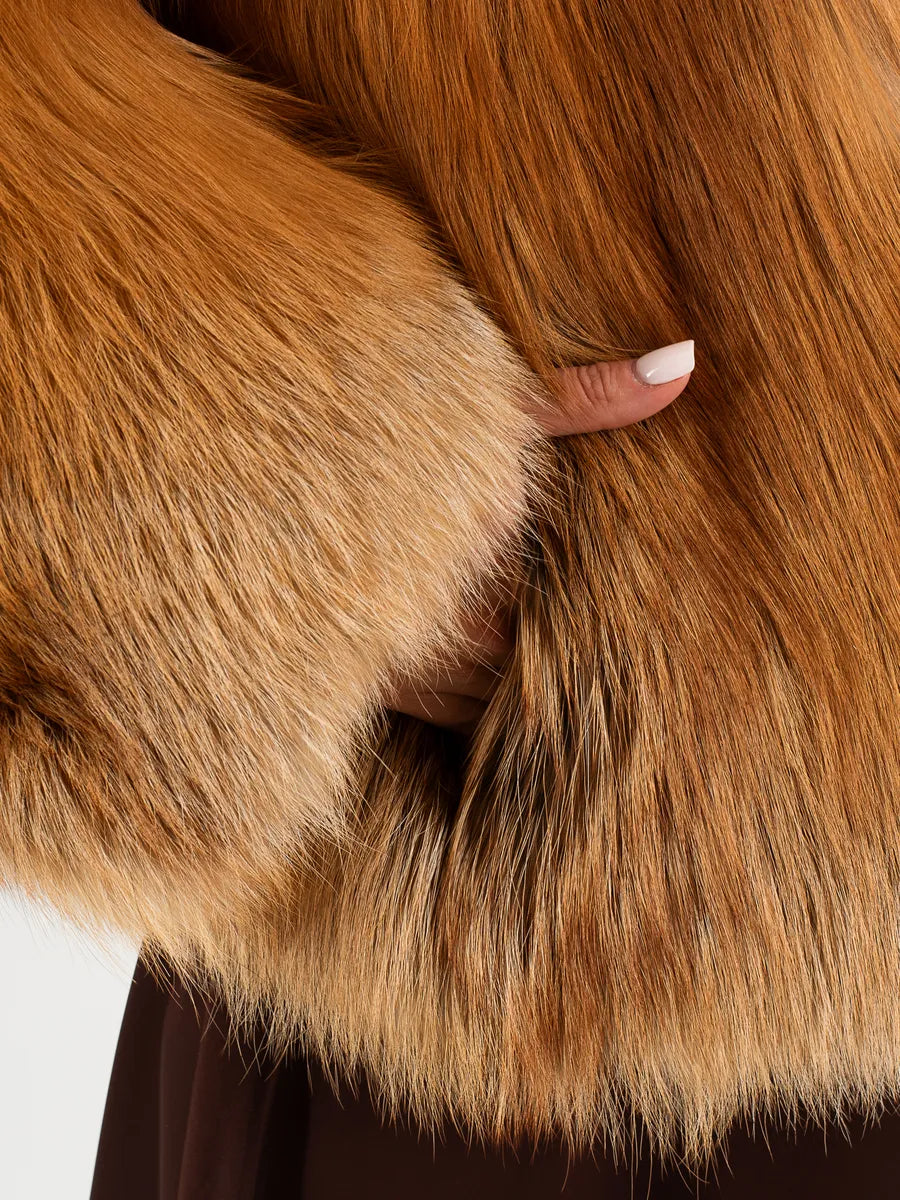 Adelina este simbolul rafinamentului clasic reinterpretat în cheie modernă. Confecționată din blană naturală de vulpe aprinsă, această haină atrage toate privirile prin nuanțele sale bogate de cupru și auriu, completate perfect de croiala elegantă cu guler în formă de V.