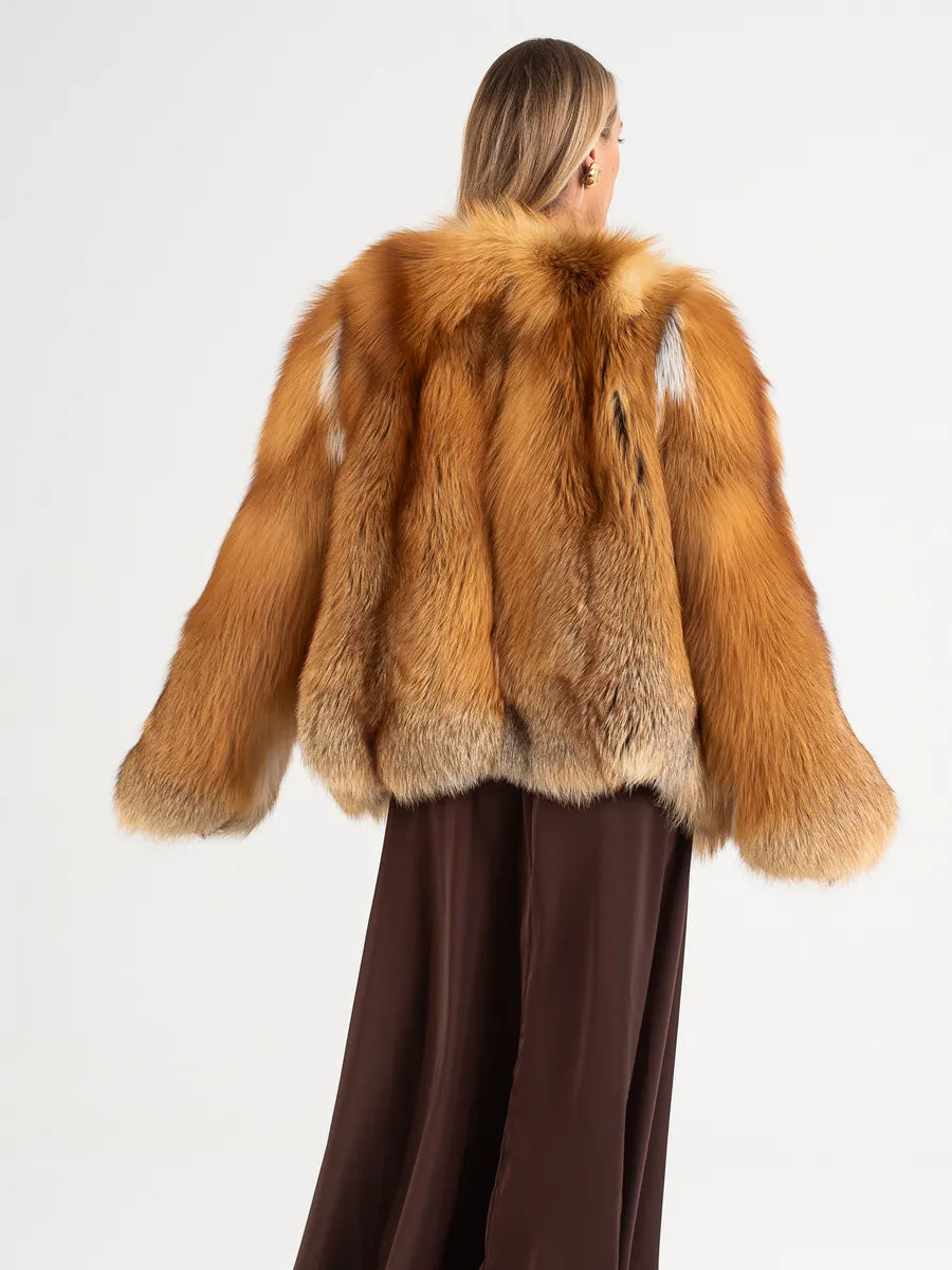 Adelina – Haină scurtă din blană naturală de vulpe  cu guler în formă de V