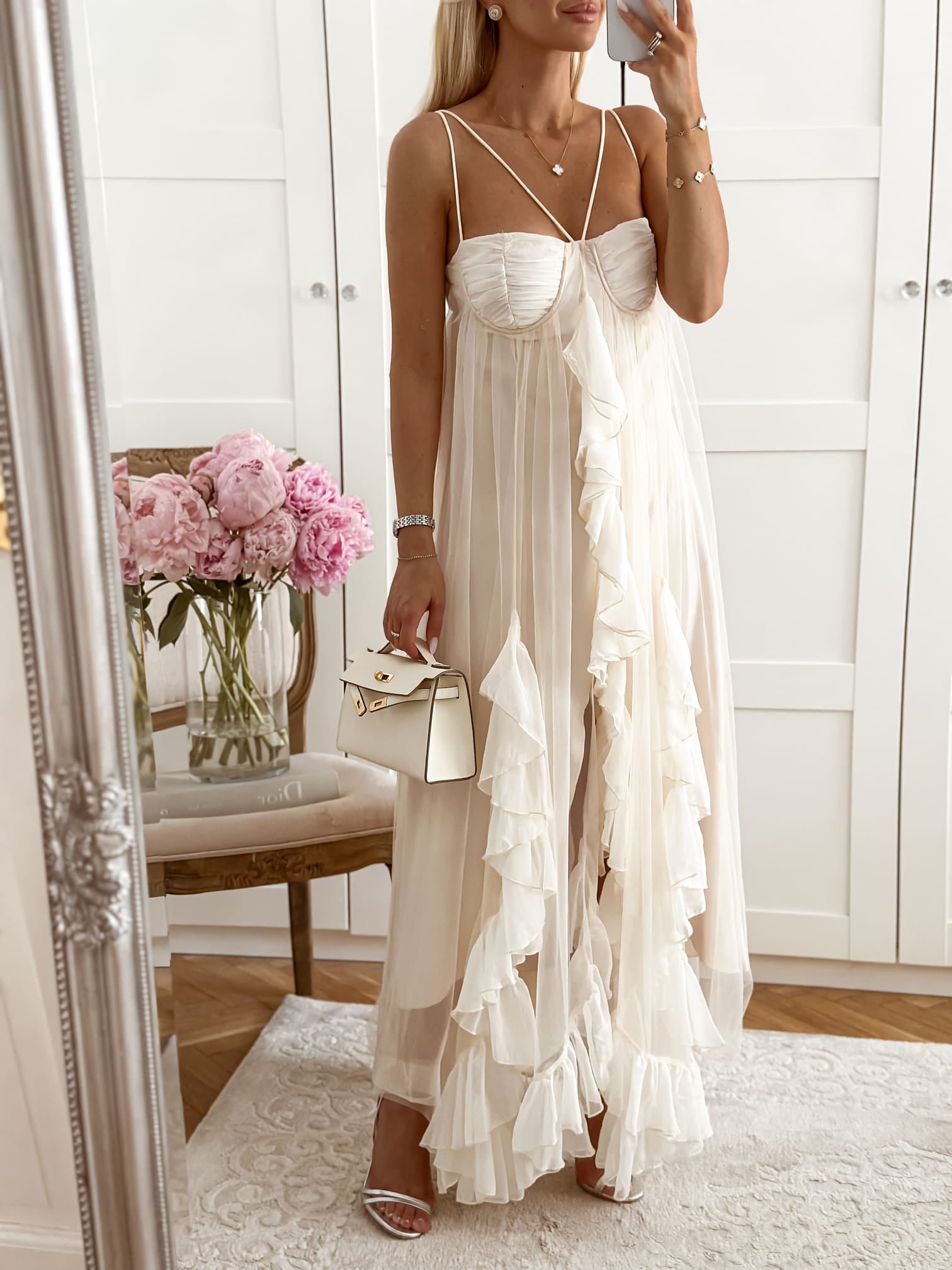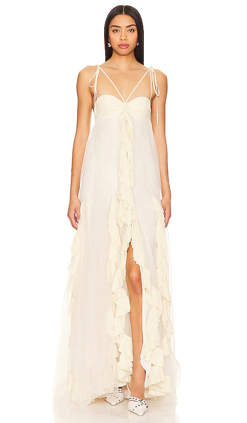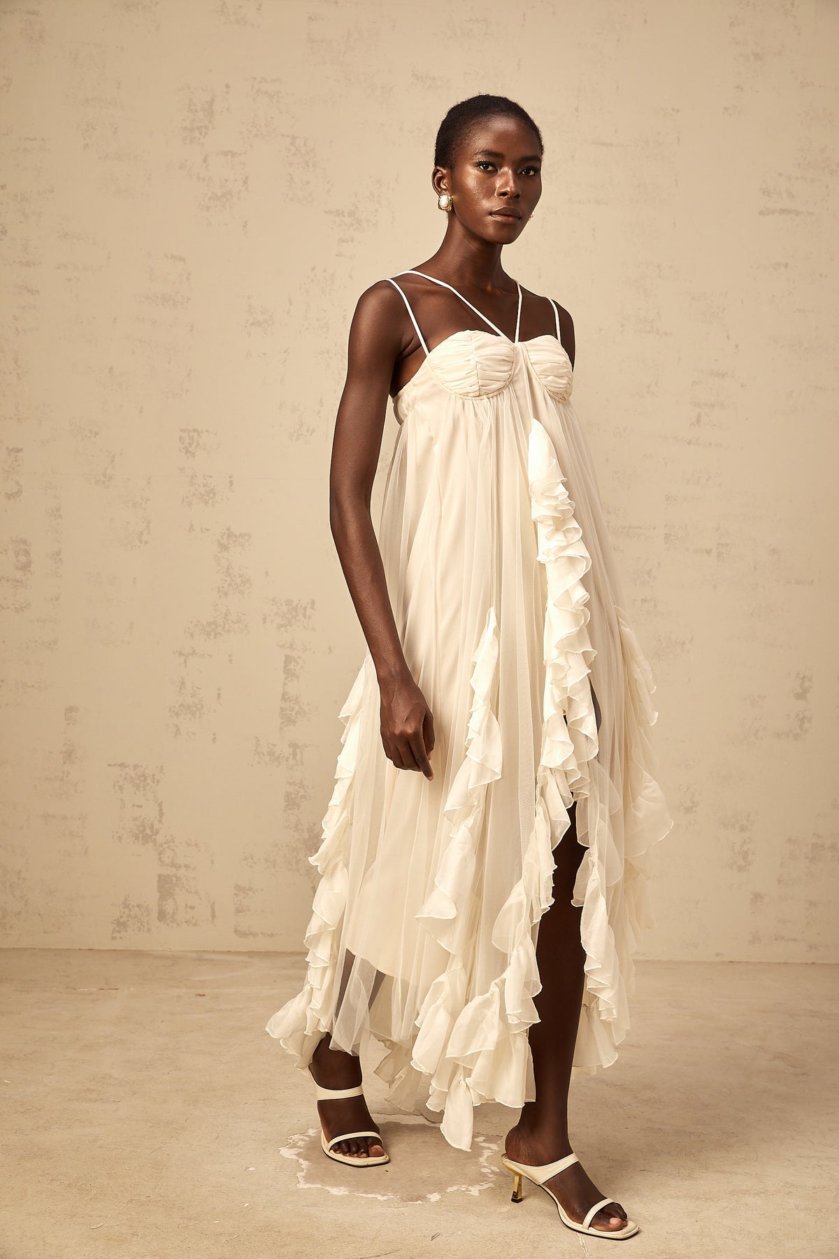 Rochia Zenya este o piesa rafinata si romantica, ideala pentru ocazii speciale. Fluida, aerata si ultra feminina, aceasta rochie este realizata dintr-un tul moale, cu croiala maxi si accente moderne.