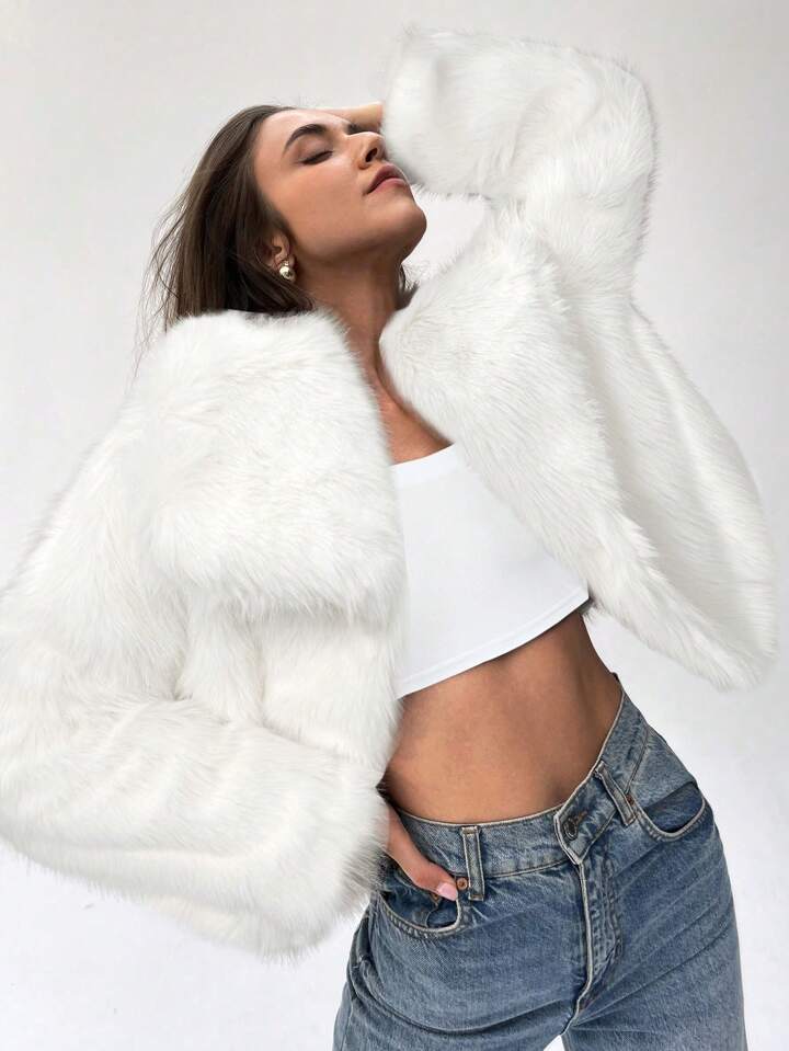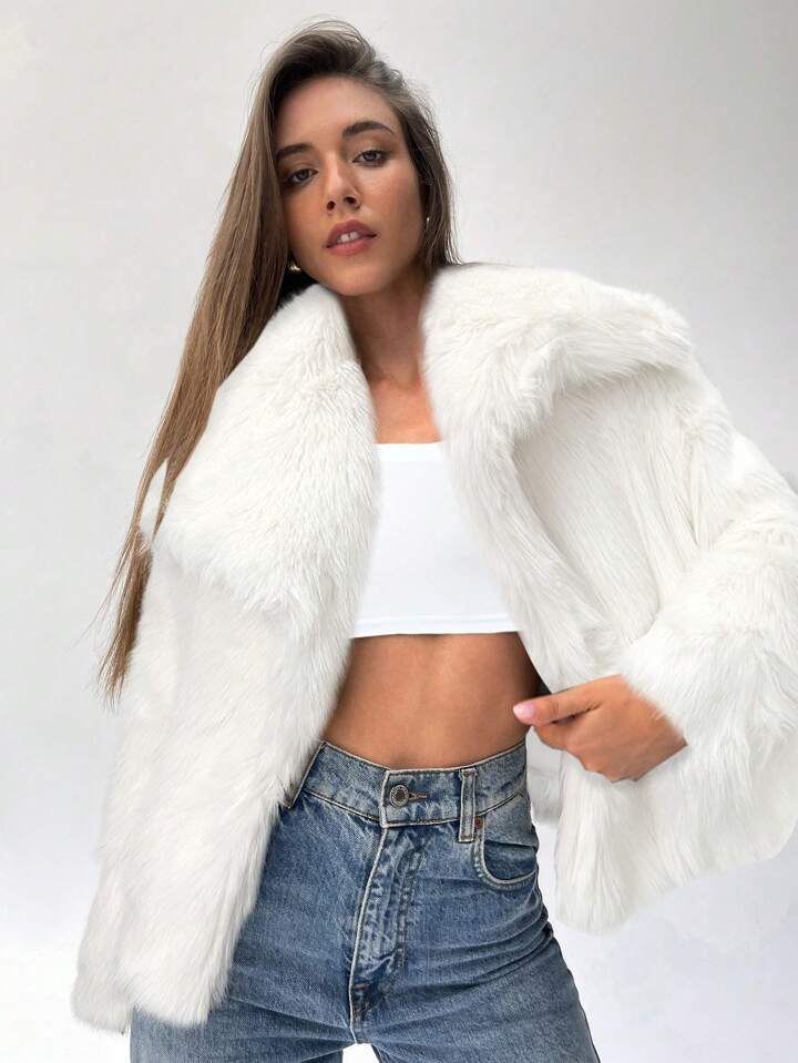 Fie că este drapată peste umeri sau împodobește-ți ansamblul, această blană albă simbolizează o glamour atemporală care transcende anotimpurile. Îmbrățișați alura șicului iernii cu această piesă rafinată, în care moda se întâlnește cu frumusețea eterică a zăpezii în cascadă.